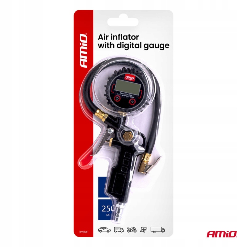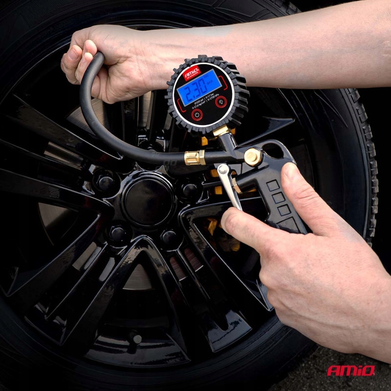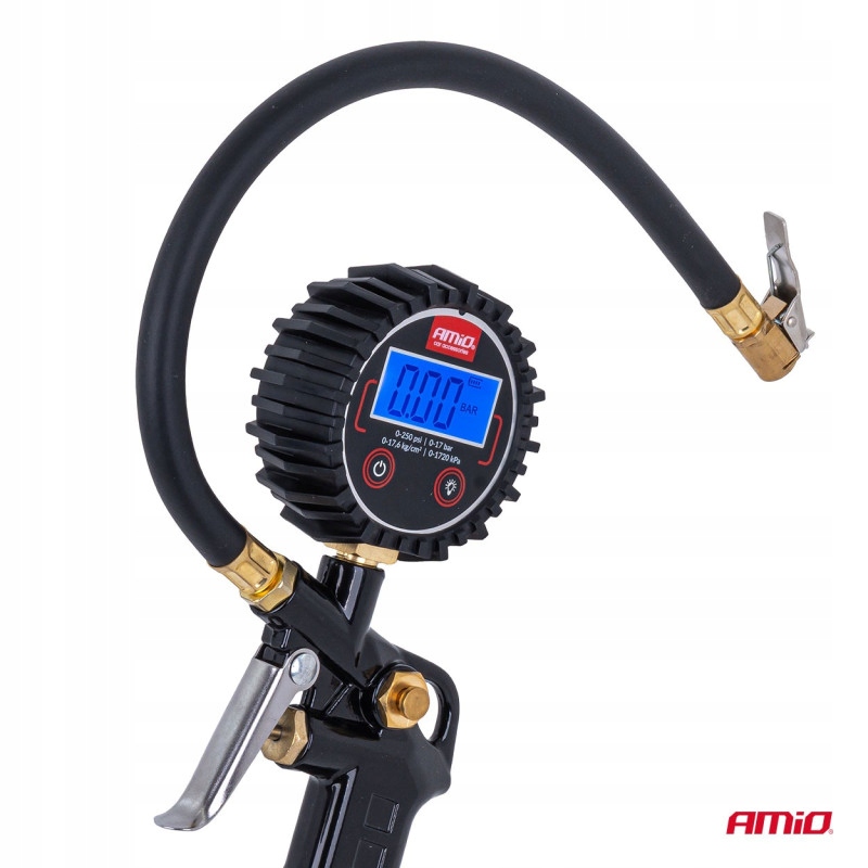 Пистолет удобен в использовании и надежен — позволяет быстро восполнять давление и контролировать значения на четком цифровом экране. Резиновая крышка защищает манометр от повреждений, а качество изготовления гарантирует длительный срок службы.