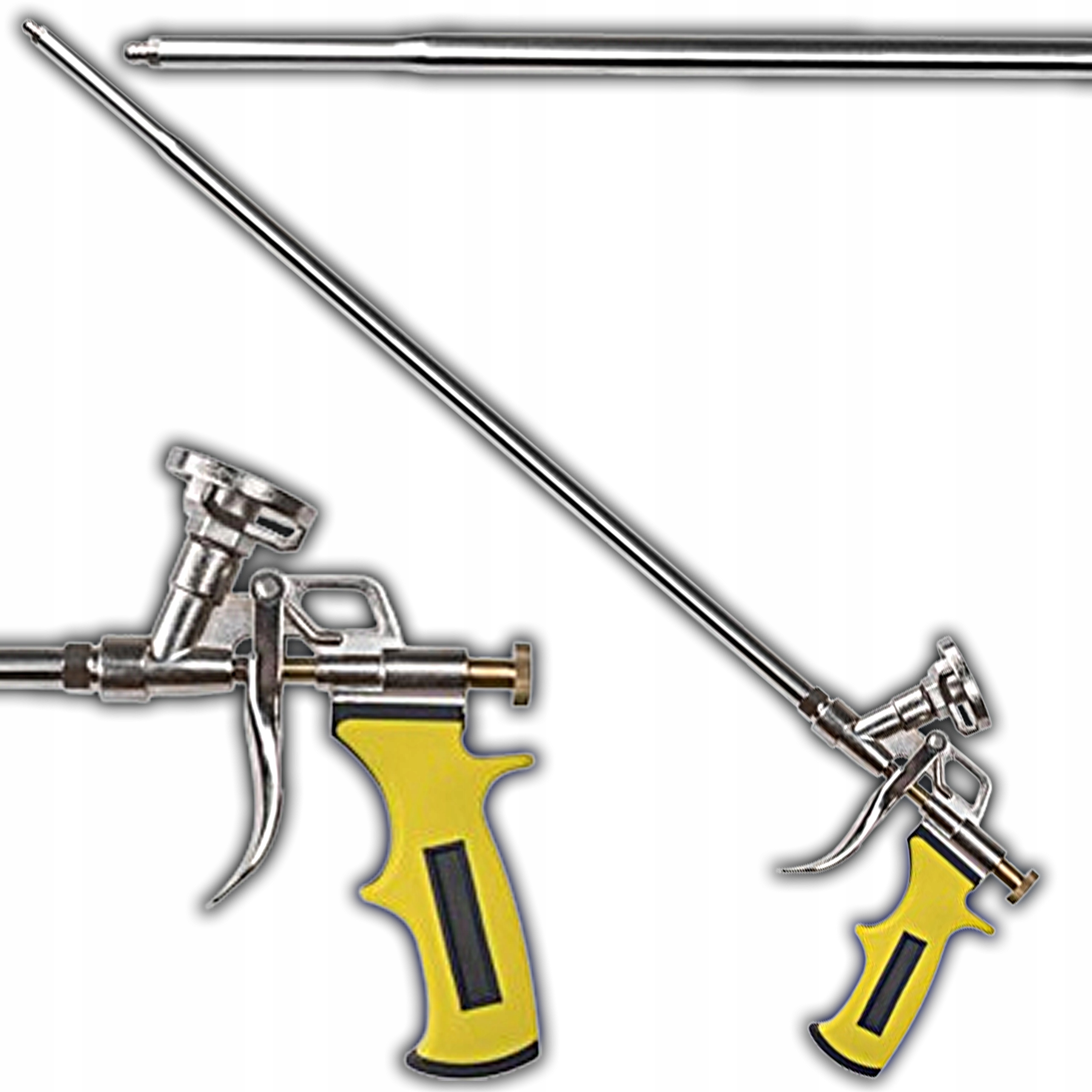 монтажный пенопластовый пистолет с длиной 500 -мм трубки является надежным инструментом для точного применения полиуретановой пены от банок давления. Благодаря прочной конструкции алюминия и стали, он обеспечивает долговечность, сопротивление интенсивной работе и комфорту работы.