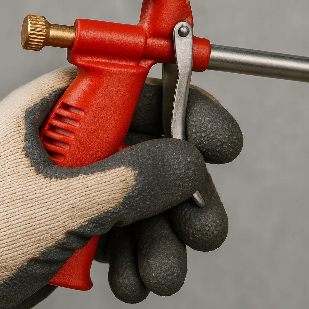 - Позволяет точно контролировать количество наносимой пены или клея, минимизируя потери материала.