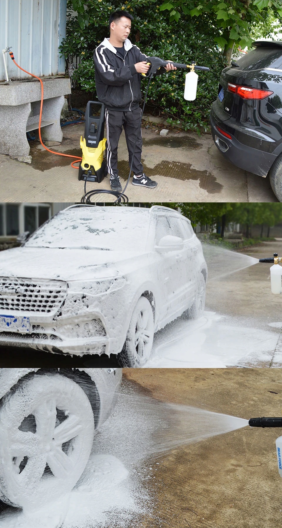 Пеногенератор имеет резьбу ¼ дюйма, поэтому мы можем установить разъем, подходящий к любой стиральной машине бытовой серии. Копье прекрасно работает со всеми типами жидких чистящих средств. Емкость пенообразователя примерно 1 литр. Прозрачный химический бак позволяет контролировать количество пенообразователя. Пенный пистолет имеет регулируемый угол струи воды с пеной и количество подаваемых химикатов. Латунный корпус гарантирует долгосрочное и безаварийное использование. В отличие от стандартных дозаторов химикатов, размещаемых внутри аппаратов высокого давления, пеноаппликатор предлагает огромные возможности использования любых химикатов (даже агрессивных). Он монтируется прямо возле выхода воды, поэтому агрессивные химикаты обходят циркуляцию внутри стиралки, исключая риск повреждения насадки.