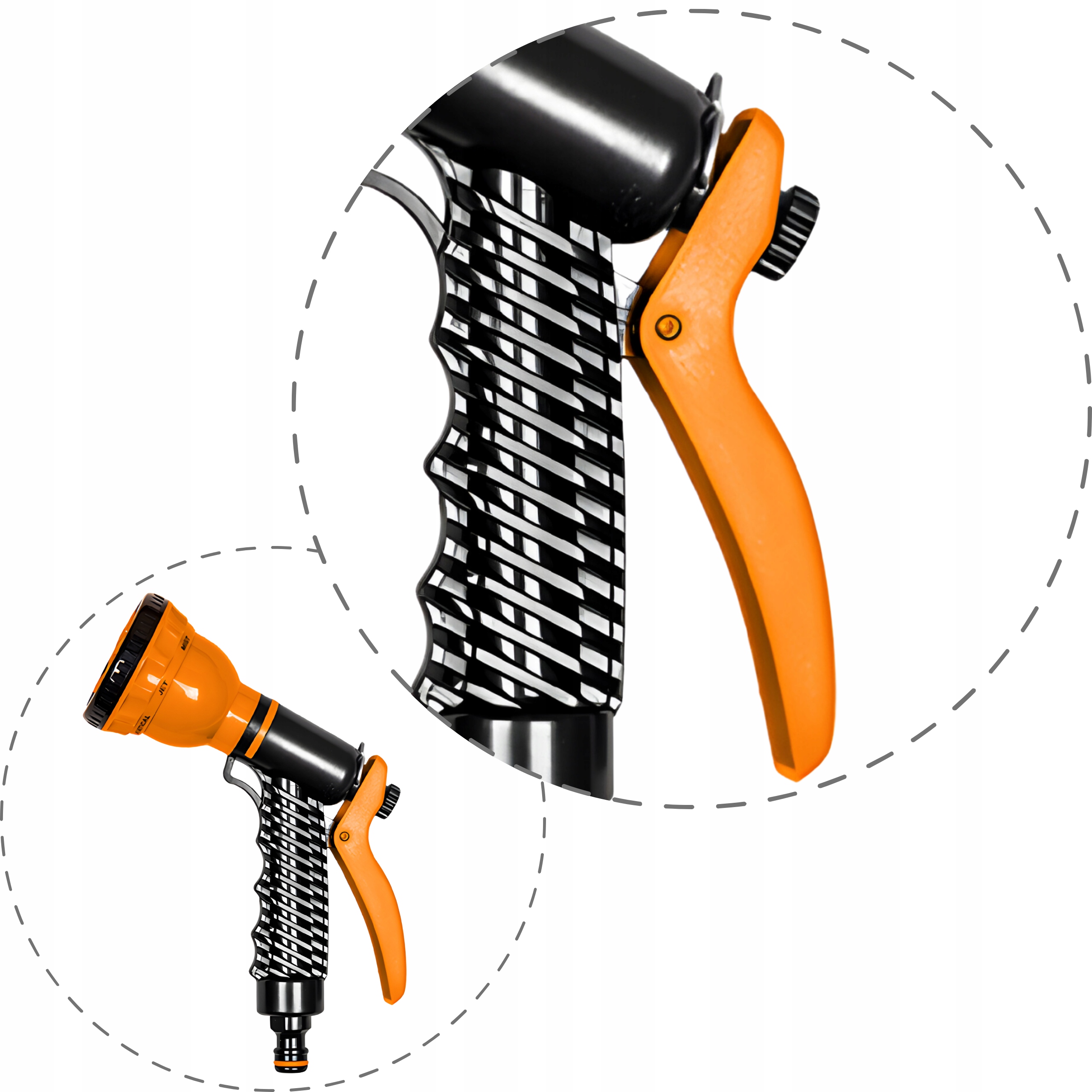Она обеспечивает не только возможность регулировки силы струи воды, но и функцию блокировки непрерывной работы. Эта инновационная функция позволяет пользователю удобно настраивать как интенсивность распыления, так и постоянство полива без необходимости постоянно удерживать курок.Удобство и функциональность идут рука об руку, что делает этот пистолет незаменимым инструментом для каждого любителя сада.