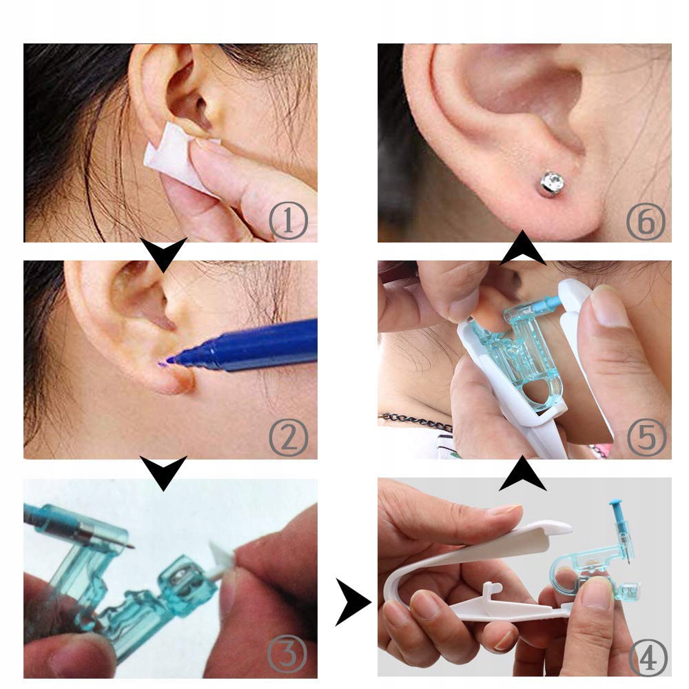 ЦЕННЫЙ НАБОР - Каждый набор для прокалывания ушей включает в себя 6 саморазрушающихся пистолетов для прокалывания ушей со встроенной серьгой, 6 чистых инструментов и 1 приспособление для пирсинга. Используется как новичками, так и профессионалами.