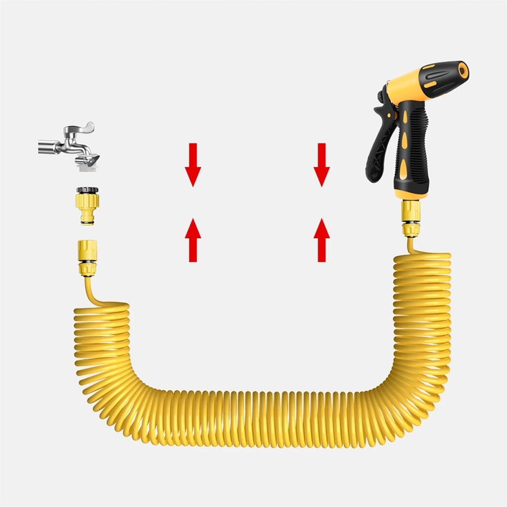 🚿🚿 Удобная выдвижная функция: распылитель воды под высоким давлением с Функция автоматического реверса предлагает уникальную гибкую конструкцию хранения, которая легко решает сложную проблему хранения традиционных водопроводных труб. Наслаждайтесь беспрепятственным поливом, который не занимает дополнительного места и может быть увеличен до желаемой длины во время использования.