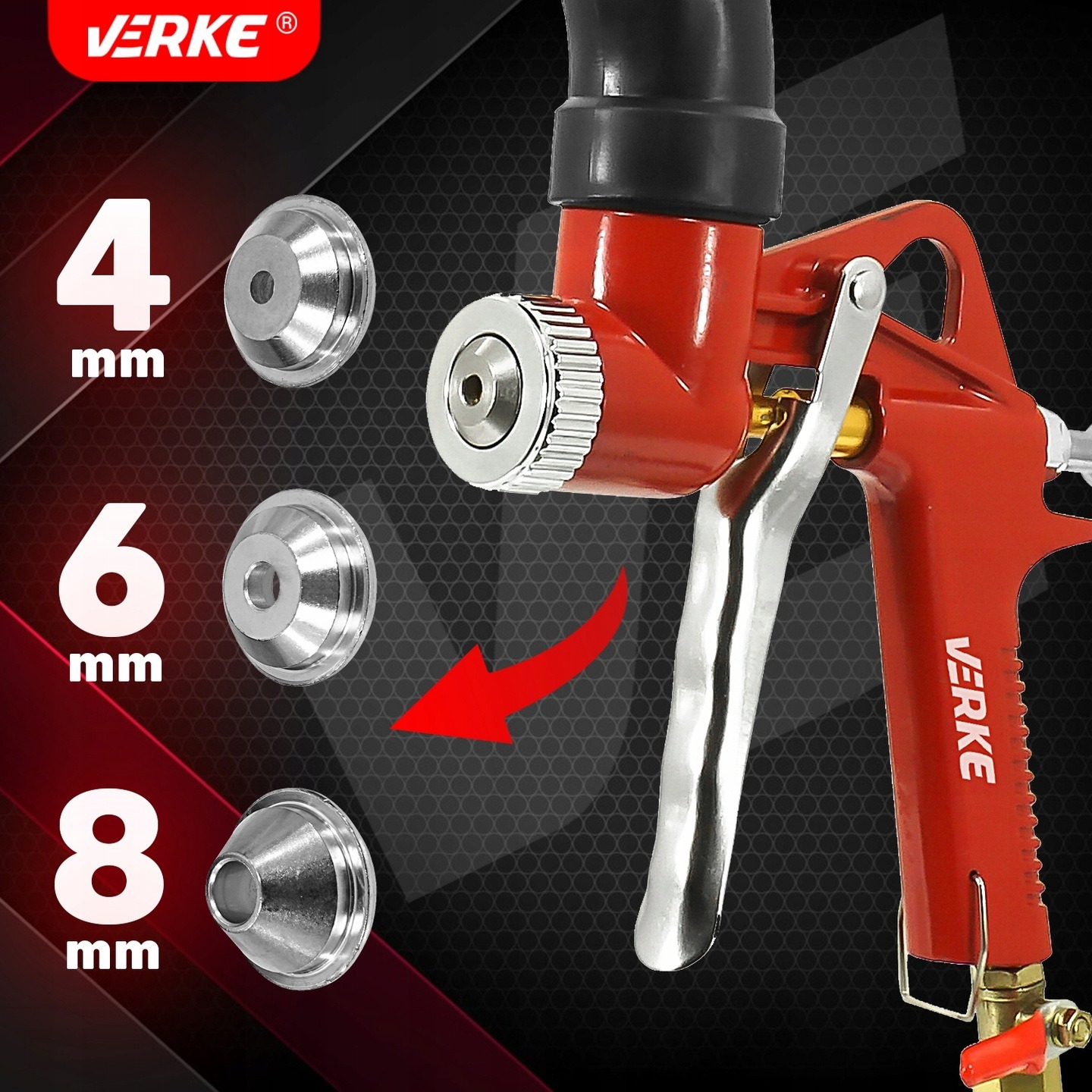 ✔️ Взаимозаменяемый сопла: 4 мм / 6 мм / 8 мм (нержавеющая сталь)