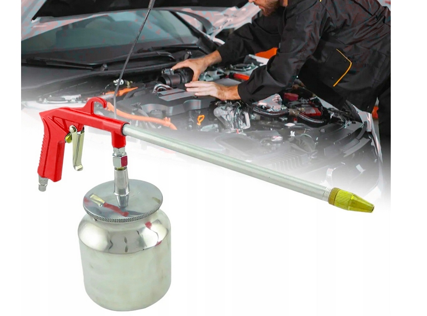 Помытый пистолет используется для очистки с помощью сжатого воздушного потока и чистящего вещества. Благодаря оборудованию с резервуаром и длинным сопло, пистолет позволяет чистить даже в трудных местах.