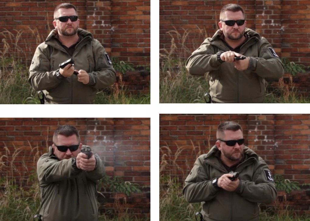 Затем, вставив заряженный магазин, просто сдвиньте рычаг фиксатора затвора так, чтобы через долю секунды пистолет снова был готов к выстрелу.