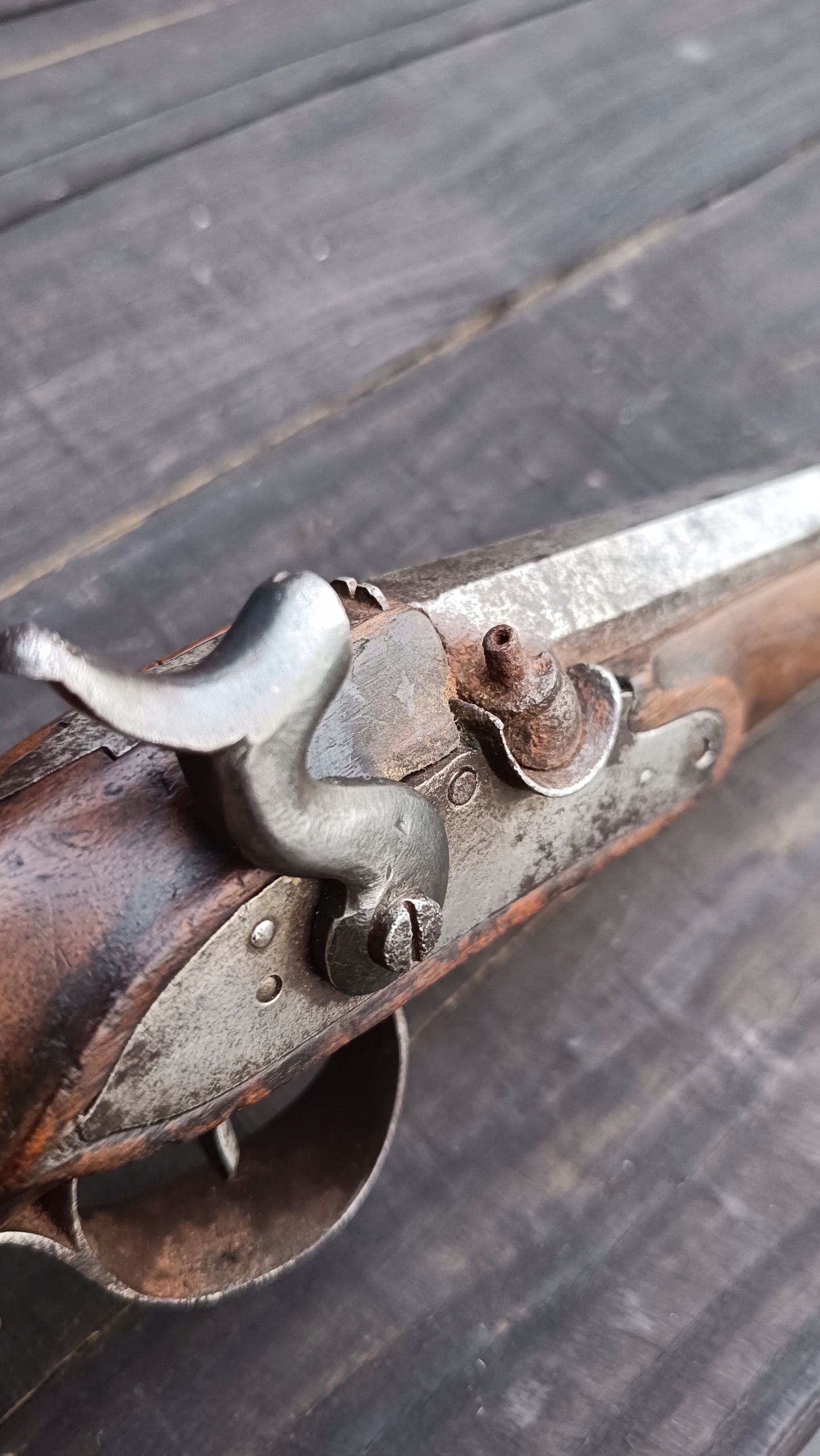 Привет всем. Продам пистолет с черным порохом в хорошем состоянии. Замок работает очень хорошо, дерево тоже в хорошем состоянии. Ствол толстый. Камин в порядке. Ключица оригинальная, но слишком маленькая.