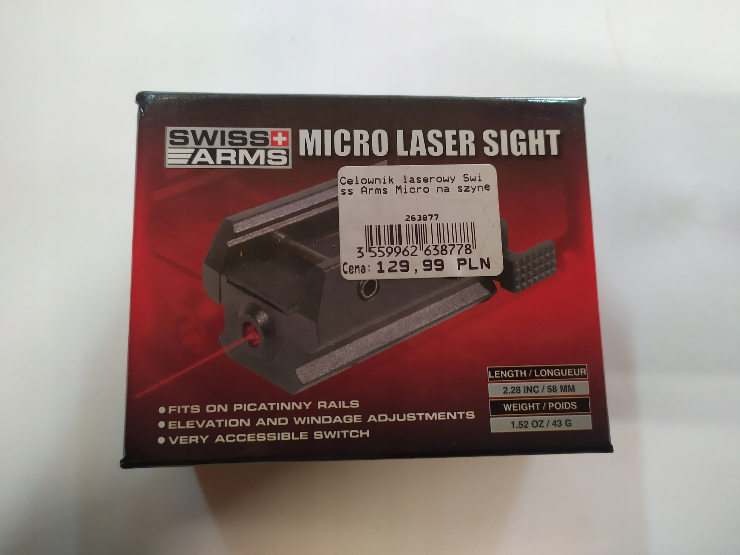 Лазерный прицел, предназначенный для реплик, оснащенных планками стандарта Пикатинни (22 мм). Благодаря короткой монтажной рейке его можно использовать как отдельное устройство или как расширение для установки другого оборудования, соответствующего стандарту RIS, например фонаря. Установка прицела на ружье облегчает быстрое наведение на цель без необходимости согласования мушки с целиком. На пересечении линии прицеливания и оси ствола появляется красная точка (Red Dot), излучаемая лазером, что позволяет произвести быстрый выстрел, например «от бедра». На задней стороне корпуса имеется удобный переключатель, которым можно управлять как стреляющей, так и нестреляющей рукой. Его форма и размер позволяют безаварийно работать даже в тактических перчатках. Технические данные: Материал: металл Источник питания: 2 x LR44 Цвет луча: красный Производитель: Swiss Arms