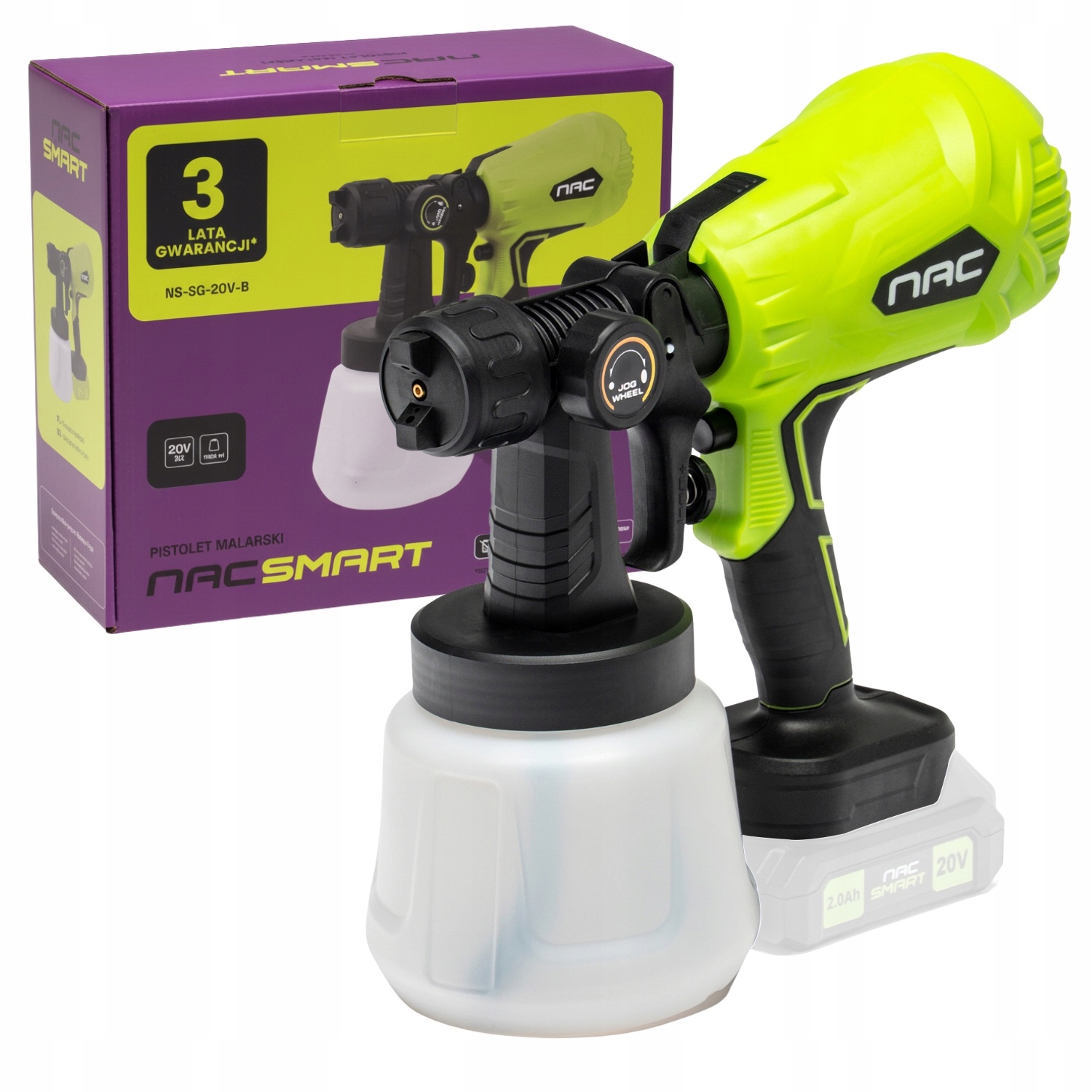 БЕСПРОВОДНОЙ ПИСТОЛЕТ ДЛЯ ПОКРАСКИ КОРПУСА 20 В 1 Л 600 МЛ/МИН + 3 НАСАДКИ NAC SMART