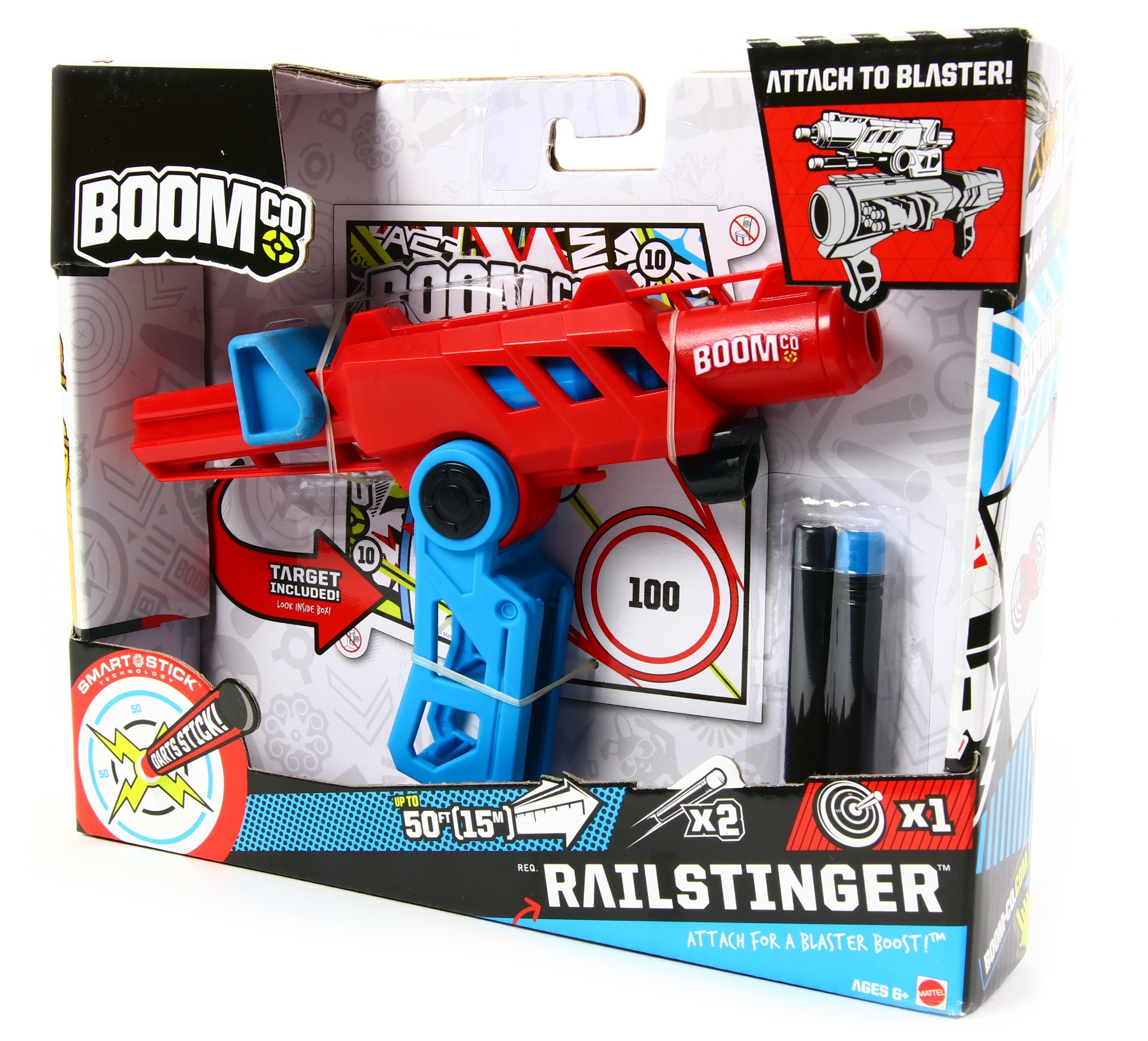 Вы также можете сложить складную ручку и прикрепить Railstinger™ к другому бластеру BOOMCo.™ с помощью направляющей, чтобы получить еще больше удовольствия!