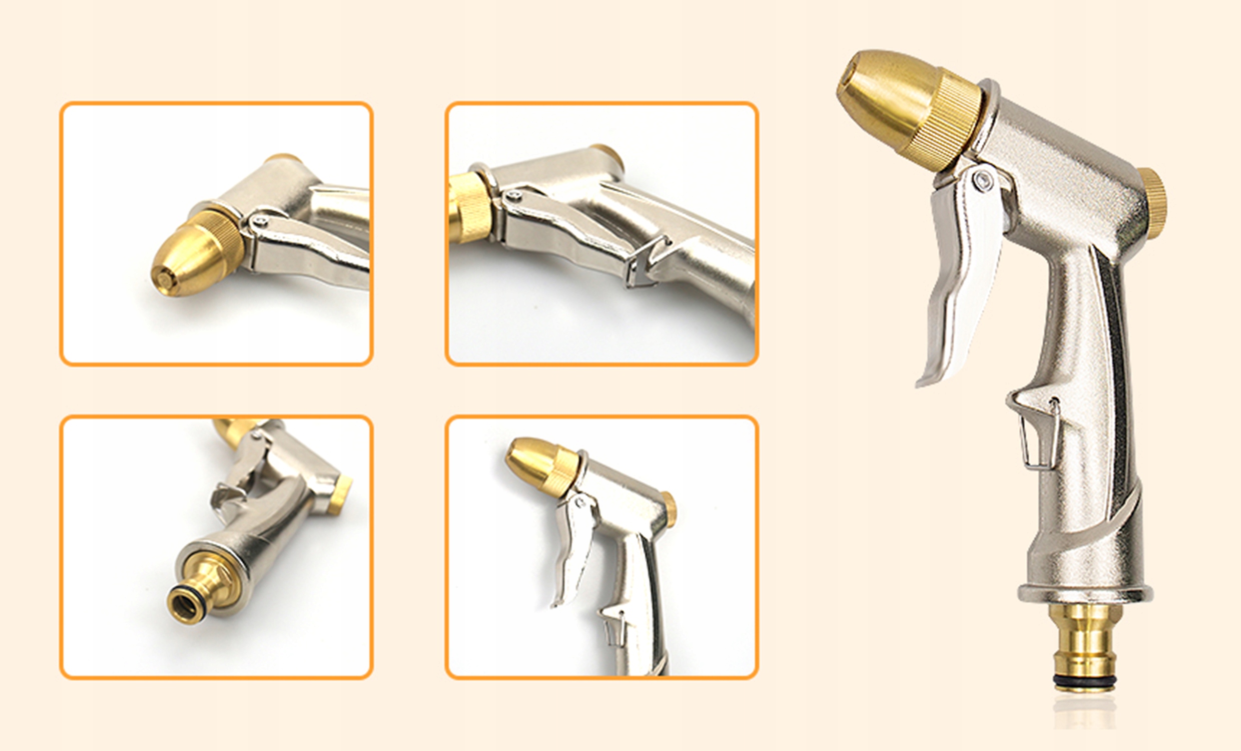 Улучшенная насадка-насос - 100% металл. Сопло устройства прочное, изготовлено из цинкового сплава и спусковой крючок. Высококачественная защита от ржавчины, коррозии и истирания, более прочная, чем пластик, при длительном использовании.