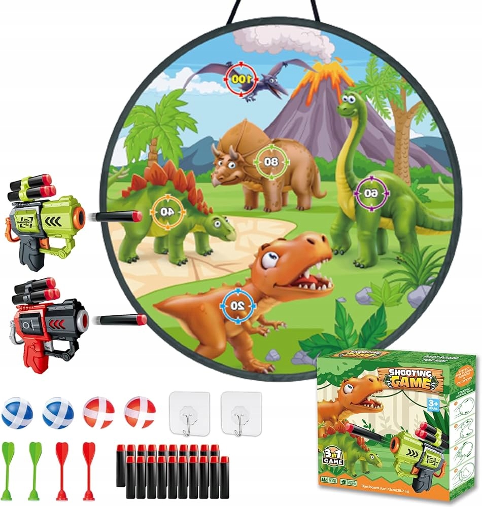 strzeny, цель и гонка: взбейте динозавров в целевой игре, подготовьте литры пены, нацелены на динозавров и примите участие в конкурентной игре между вашими детьми. Вы также можете использовать дротики или мячи, чтобы конкурировать за титул чемпиона