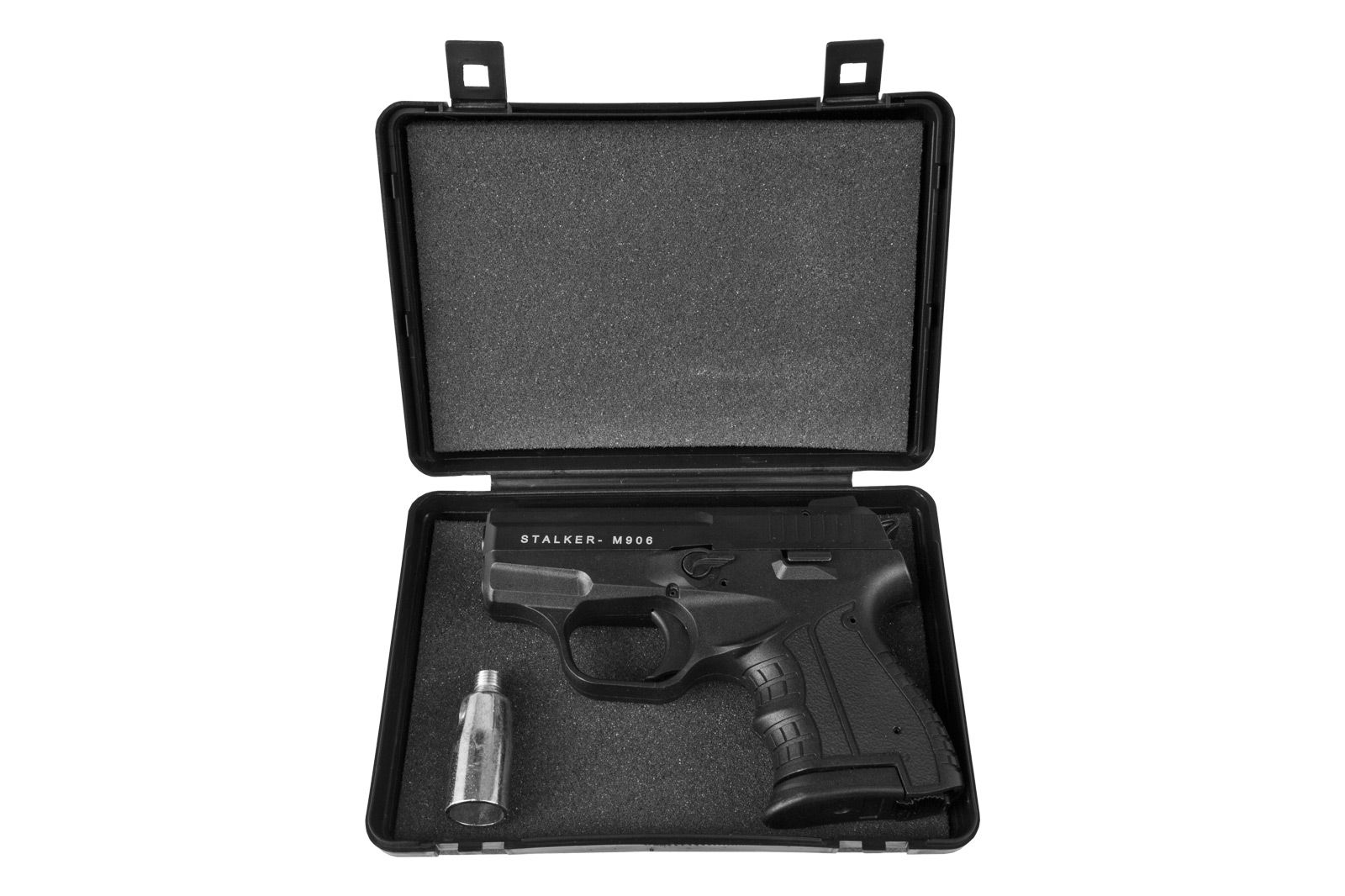 Электрошокер «Сталкер М906» — самый громкий полуавтоматический пистолет-сигнализатор, доступный без разрешение. Подвижный затвор и выброс гильзы позволяют точно воспроизводить работу огнестрельного оружия.