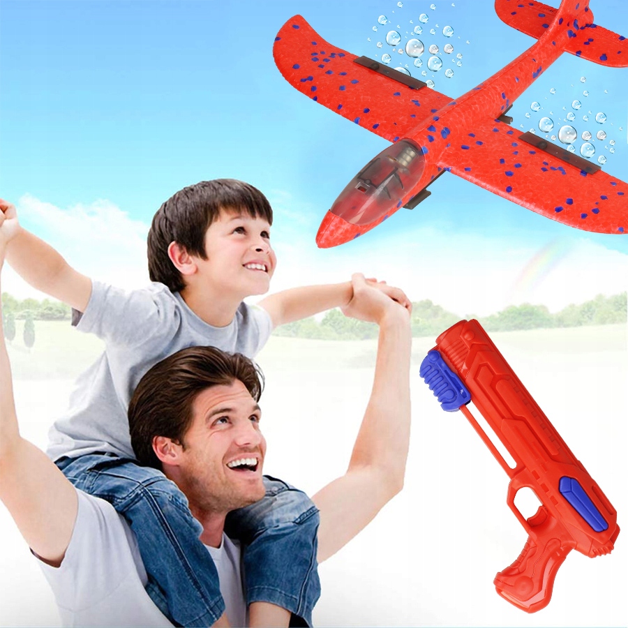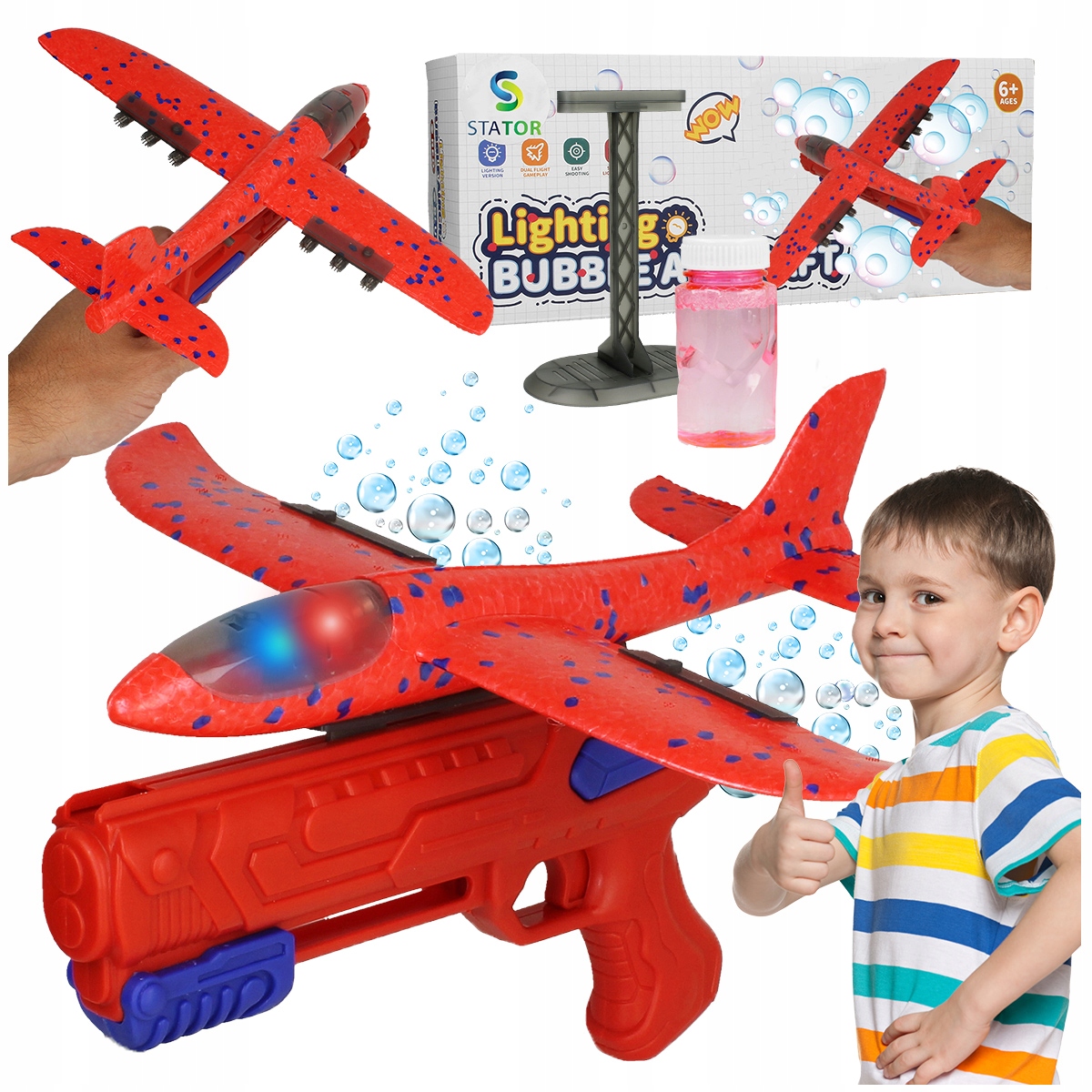 PISTOLET WYRZUTNIA SAMOLOTÓW SAMOLOT STYROPIANOWY Z WYRZUTNIĄ LED + BAŃKI