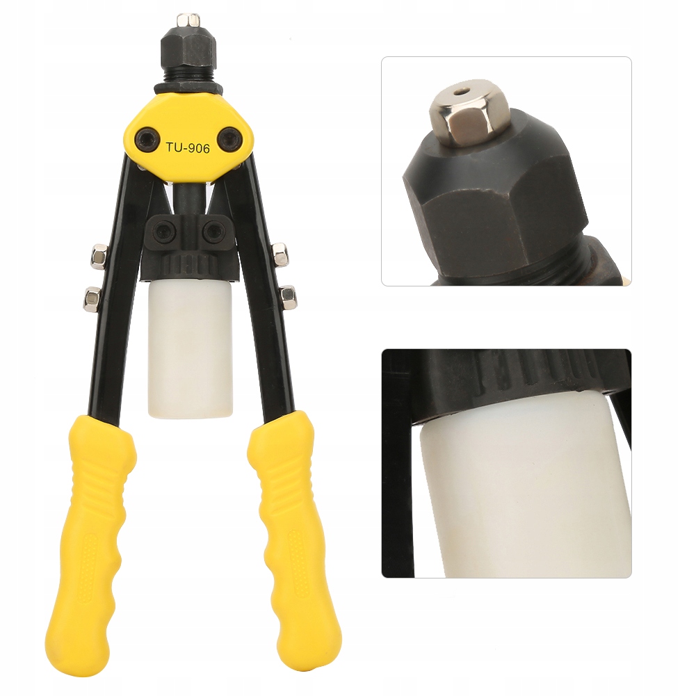 Функция: 1. Прочная стальная конструкция хромовой ванадий, твердое и долговечное. Анти -скользящая эргономическая ручка, удобная при захвате и обработке. Устойчивый к шокому дизайну исключает влияние нити на плече во время работы. Бутылка на ногте предназначена для предотвращения несчастных случаев и поддерживать среду в чистоте. Широко используется в сборке автомобильных продуктов, лифтов, переключателей, инструментов, мебели, украшений и машин. Пистолет с двойными ручками Rivetch
