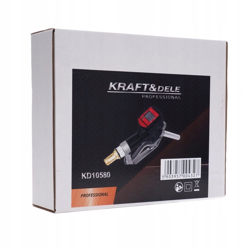 Автоматический пистолет Kraft&Dele, модель KD10580, используется для розлива бензина, дизельного топлива, печного топлива и сырой нефти. Имеет электрический счетчик, позволяющий легко измерить количество налитой жидкости.