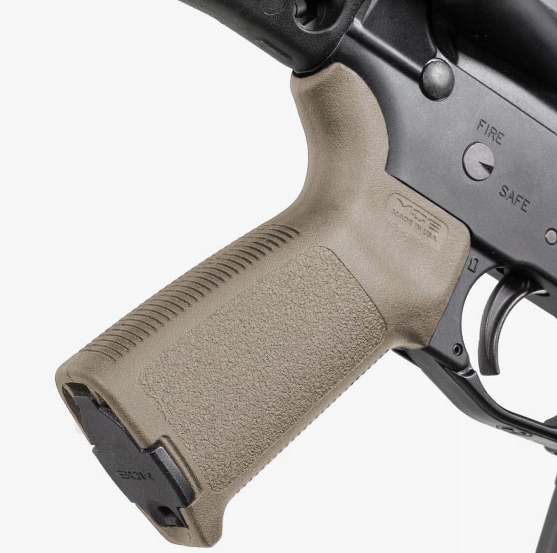 MOE GRIP изготовлен из прочного полимера, легкого, но в то же время прочного и устойчивого к погодным условиям. В рукоятке имеется отсек для магазина, что увеличивает внутренний объем и обеспечивает дополнительное место для хранения мелких предметов или инструментов.