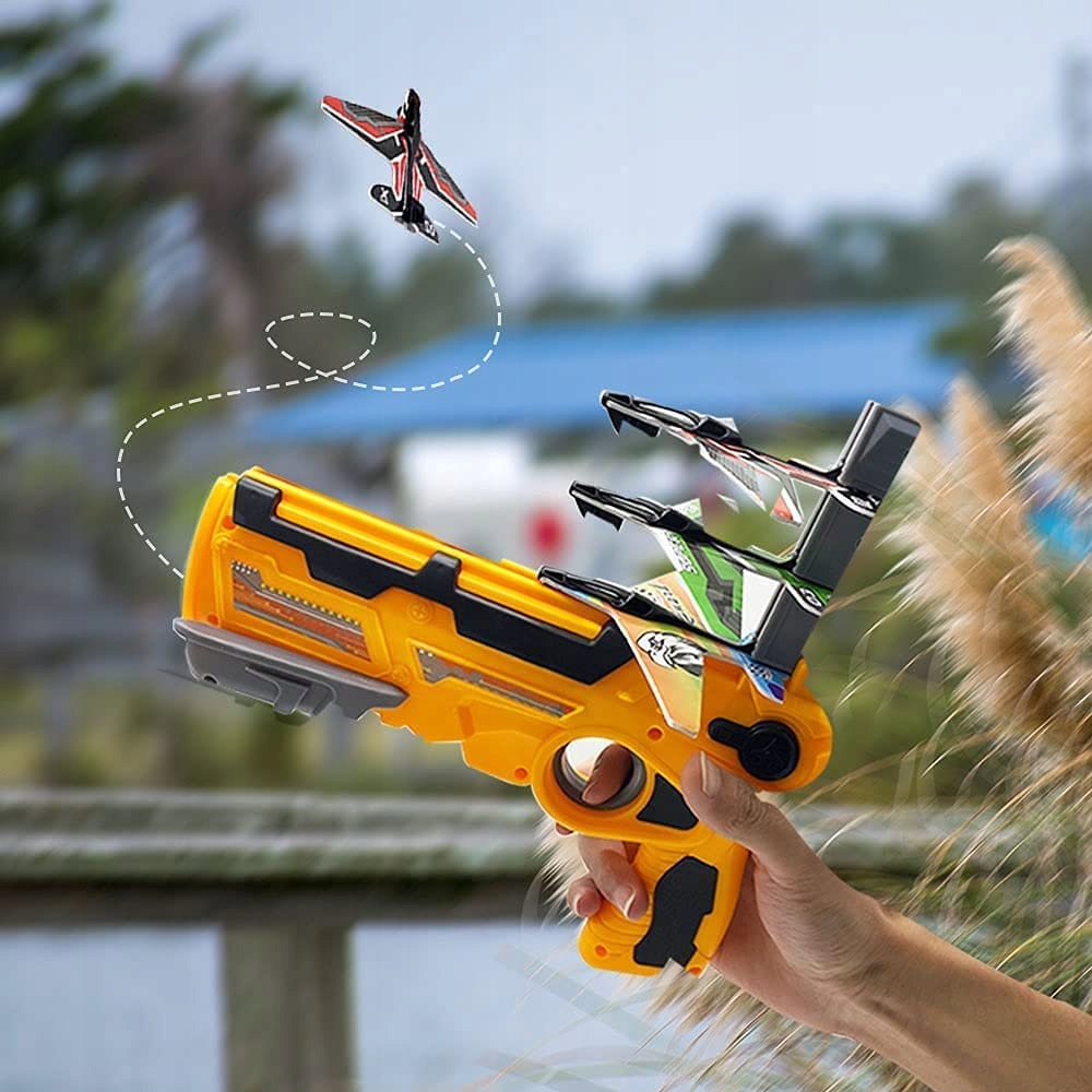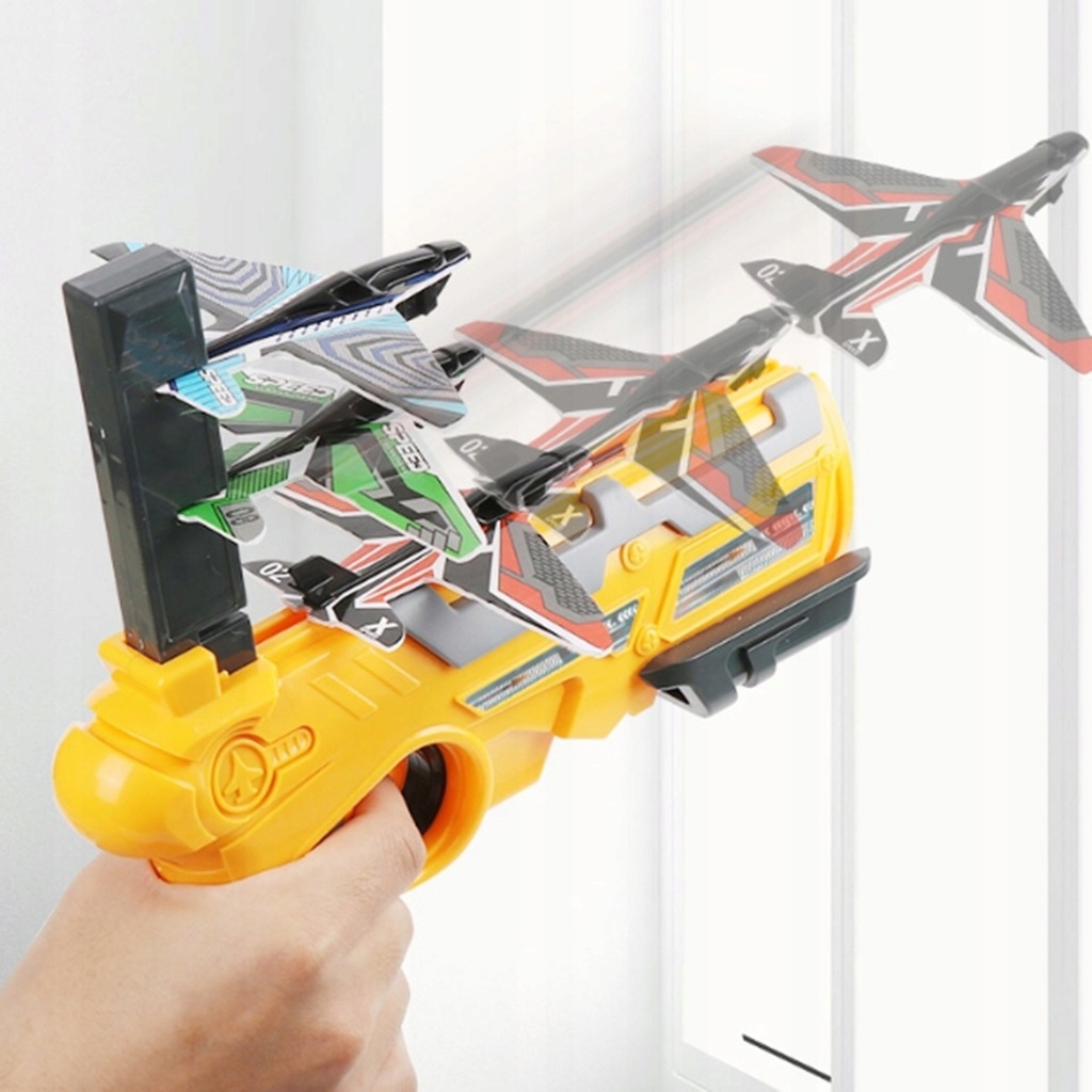 Пистолетная установка от бренда WOOPIE поразит каждого ребенка. Спасибо С помощью этой игрушки ребенок сможет летать на самолетах и разбивать различные мишени. Игрушка очень удобна в использовании. Чтобы зарядить пусковую установку самолетом, перетащите самолет к торцу пистолета, пока не услышите характерный «щелчок». Затем потяните черную молнию внизу, нажмите на спусковой крючок пистолета и наблюдайте, как летит самолет. Оружие имеет большую дальность до 8 метров. В набор входят 4 пенопластовых самолета. Пусковая установка легкая и портативная, не требует сложной сборки и батареек. Можно использовать где угодно дома и в саду!