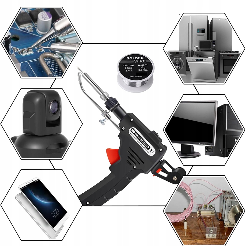 Вам не нужно использовать обе руки, чтобы установить паяльный провод относительно пайки, который устраняет риск сжечь руку. Эргономическая ручка эффективно предотвращает скольжение устройства даже во время длительного использования. Структура пистолета идеально подходит в руке, обеспечивая удобное и точное обслуживание.