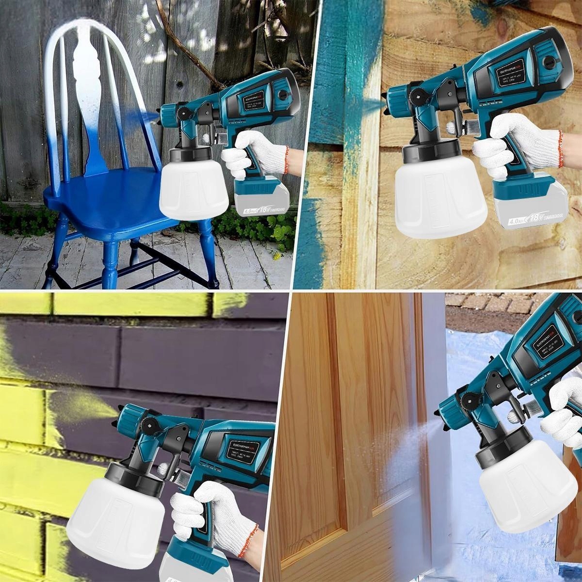 ⭐⭐⭐Беспроводная система распыления краски, замена Makita Bürstenlo, электрический краскораспылитель с 2 насадками, 3 видами распыления, распылитель краски на 1000 мл, для покраски стен.⭐⭐⭐