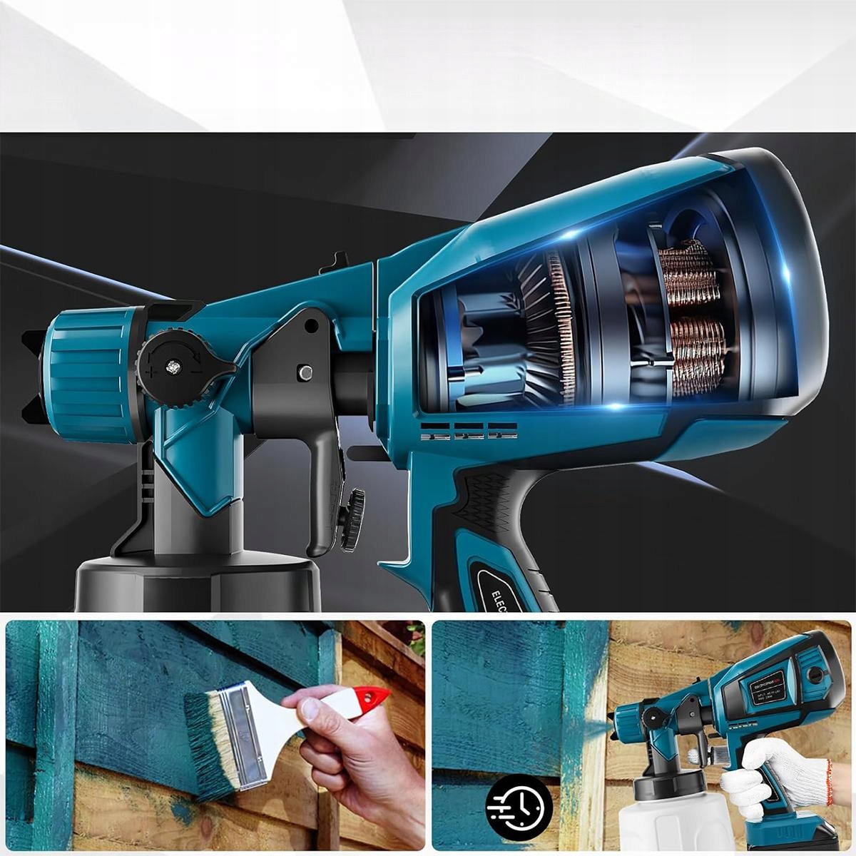 ПИСТОЛЕТ ДЛЯ ПОКРАСКИ СТЕН КРАСКОЙ 200ВТ ПОКРАСОЧНЫЙ ГЕНЕРАТОР +2 АККУМУЛЯТОРА 18В