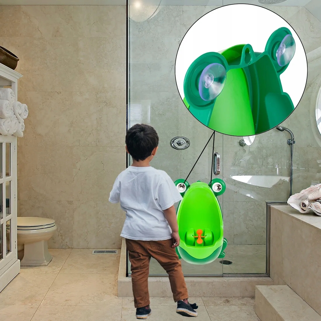 Писсуар-лягушка детский настенный с присоской — идеальное решение, которое поможет вашему ребенку научиться пользоваться туалетом самостоятельно в веселой и гигиеничной форме. Благодаря красочной, дружелюбной форме лягушки ваш малыш будет охотнее ходить в туалет. учитесь и повседневные дела станут приятным развлечением. Встроенный вращающийся вентилятор побуждает ребенка целиться, что способствует точности обучения и закрепляет хорошие гигиенические привычки.