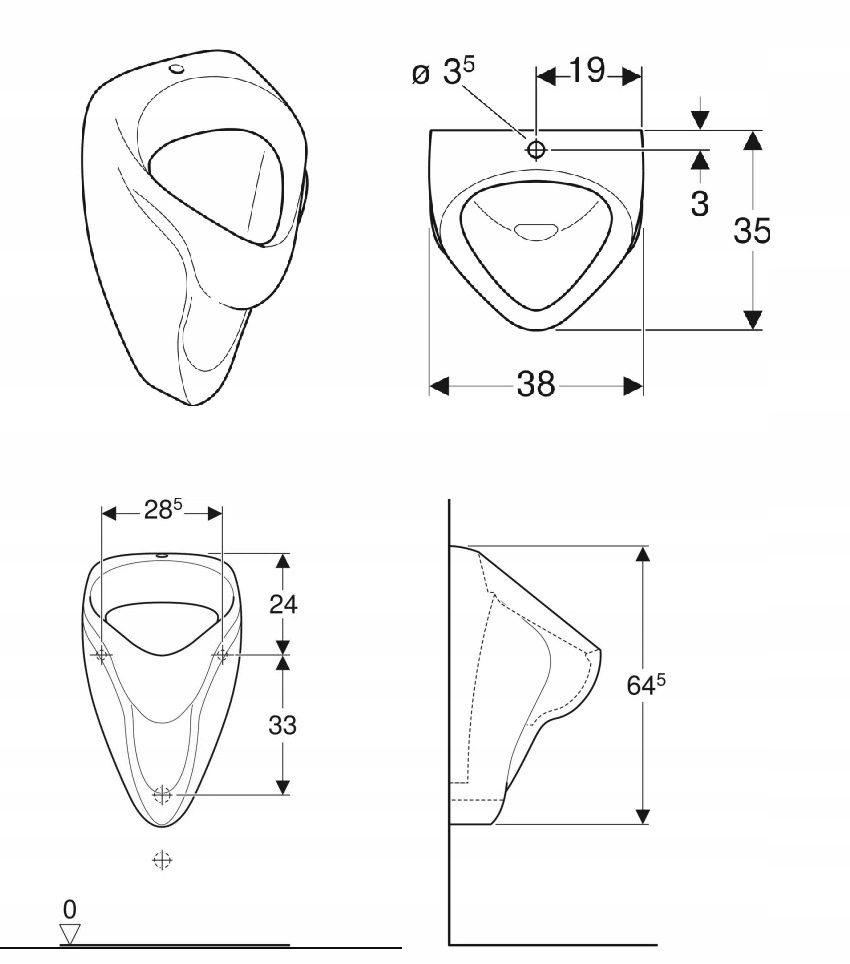 ПІСУАР GEBERIT ALEX, ЗВИШЕНИЙ ЗВЕРХУ