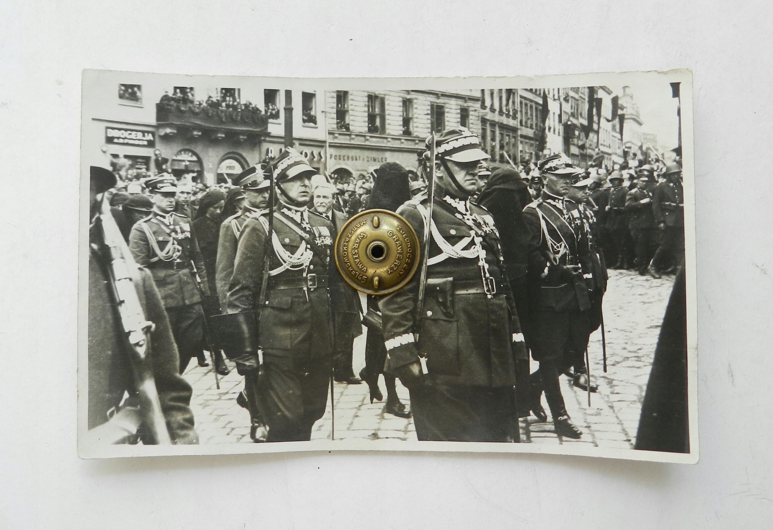 Предметом аукциона является оригинальная фотография 1935 года, на которой запечатлены похороны маршала Пилсудского на Рыночной площади Кракова (начало улицы Гродской). На фотографии, кроме вдов, справа можно увидеть: генерала Эдварда Смиглы-Рыдз, генерала Станислава Рупперта (начальник Департамента здравоохранения Министерства военных дел), генерала Болеслава Веняву-Длугошовского (командир 1-го полка). кавалерийская бригада) и капитан Александр Хрынкевич (1-й кавалерийский полк Юзефа Пилсудского). Размеры примерно: 13,9 х 8,8 см. Состояние видно на фотографиях, удалено из альбома. Юзеф Пилсудский, Краков.