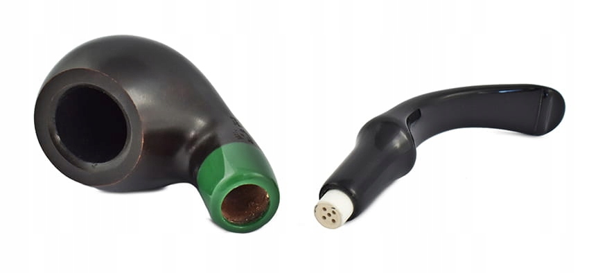 Гладкая пена с почти черным шиповатым финишем с очень нежными отблесками. Шея заканчивается широким изумрудно-зеленым кольцом. Предварительно газированная труба вместит среднее количество вашего любимого табака, а более толстые стенки защитят от быстрого горения бриара. На шее подписан логотип компании, номер и название модели – гарантия оригинальности. Акриловый мундштук оснащен инновационным наконечником P-Lip, который направляет дым во время курения прямо к небу. Трубка имеет хорошую форму и удобно лежит в руке. Идеальная идея для подарка.