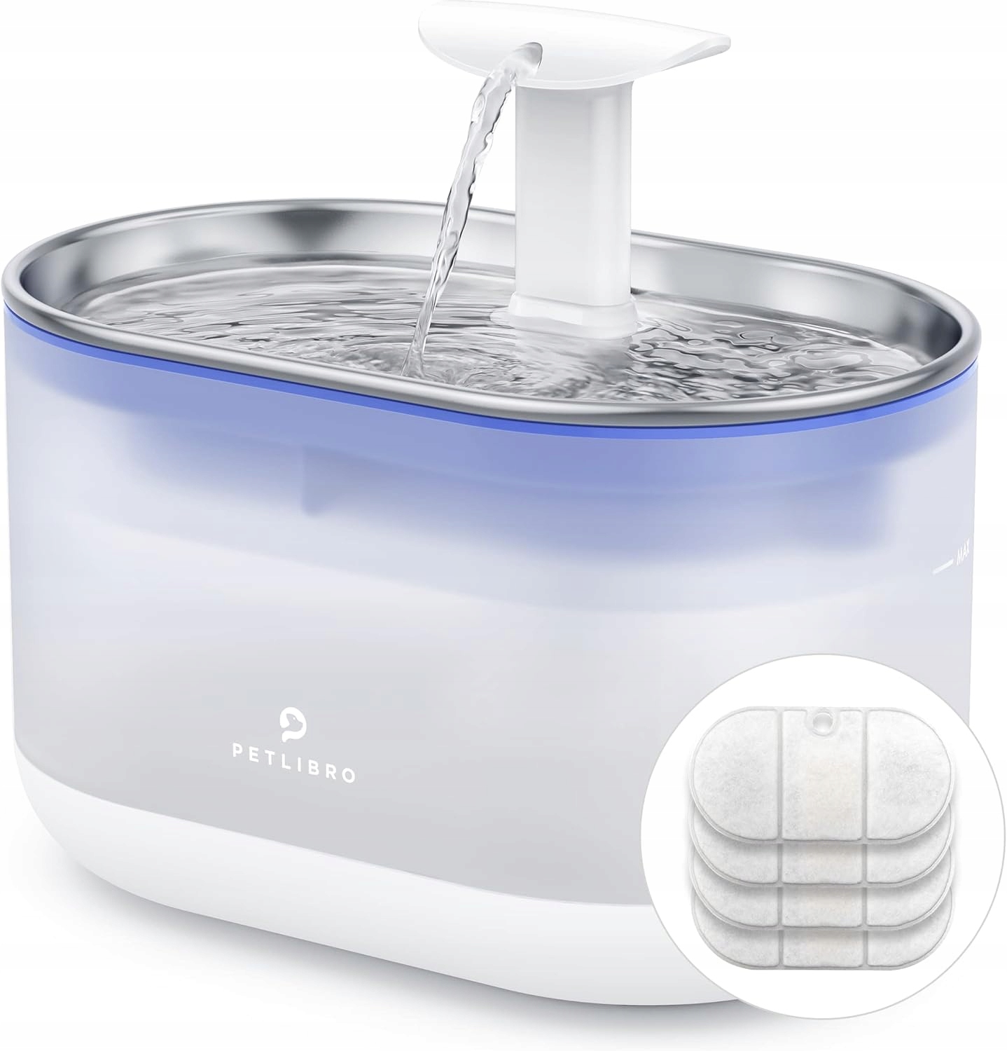 - Петлибровый фонтан имеет систему фильтрации системы фильтрации четырехпредна, которая включает в себя углеродный фильтр с большим форматом и губчатый фильтр, покрывая почти всю чашу. Для воды для максимальной эффективности очистки. Кроме того, пена предварительно фильтр в насосе ловит большие примеси и продлевает срок службы.