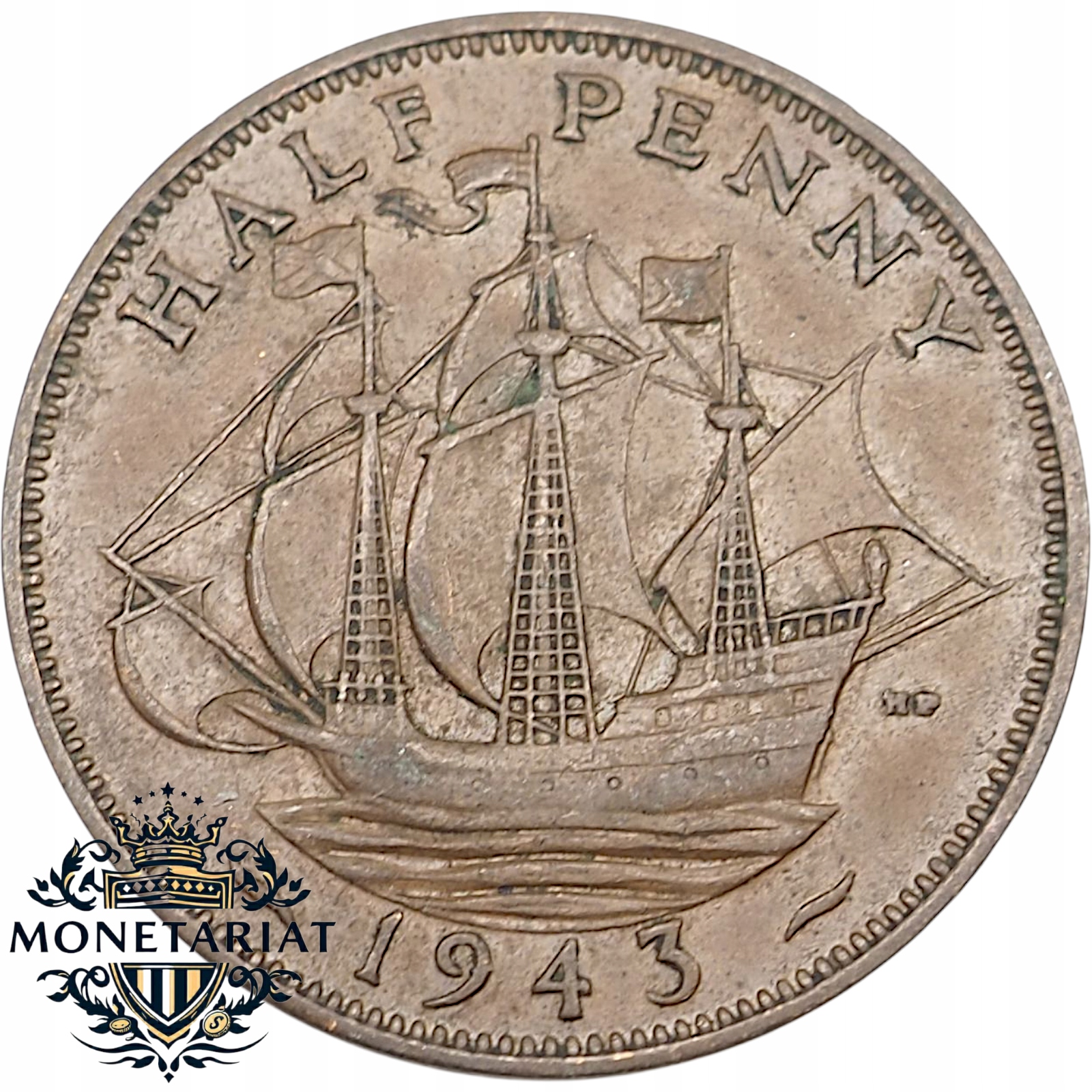 ПОЛОВИНА ПЕННИ 1943 ГОДА, ВЕЛИКОБРИТАНИЯ