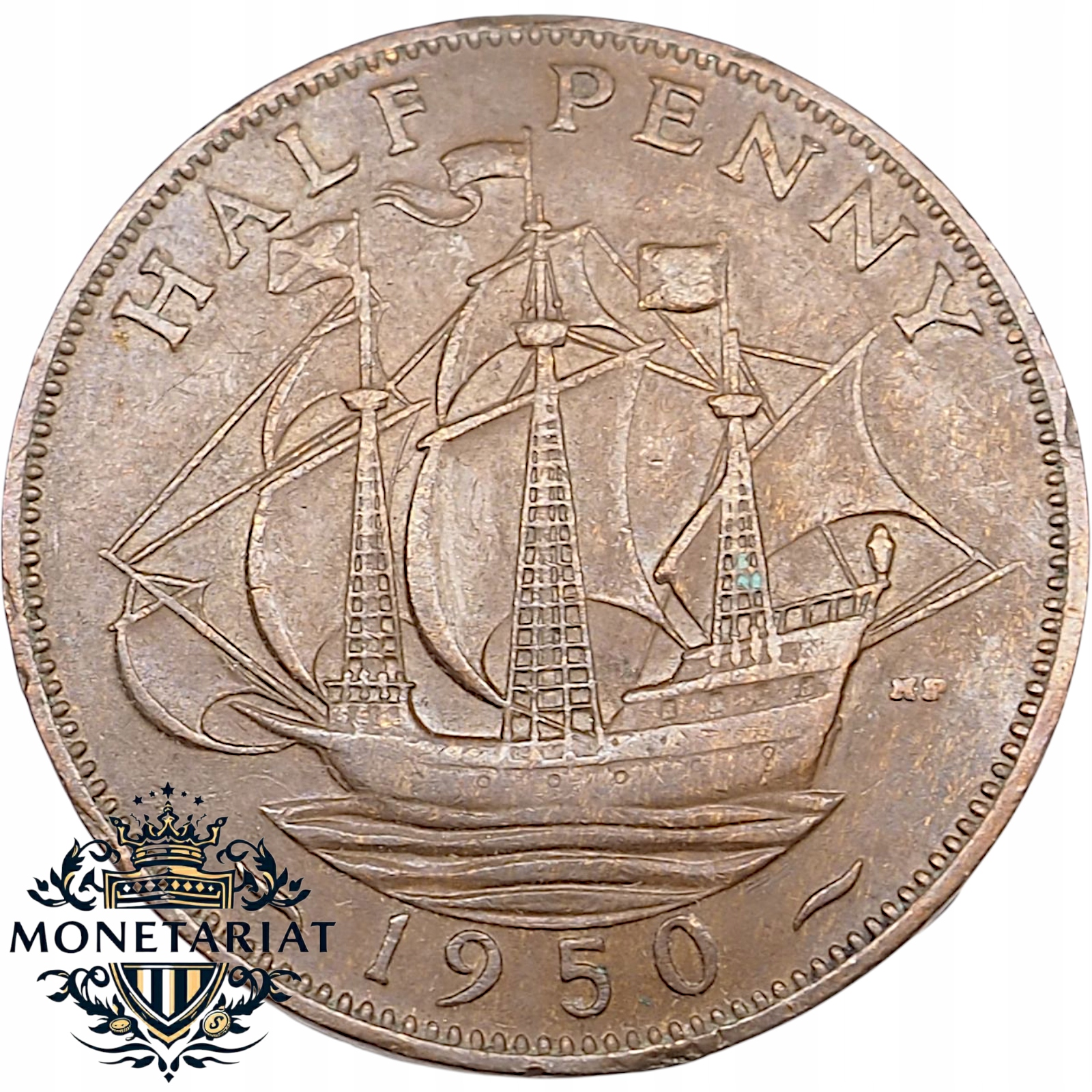 ПОЛОВИНА ПЕННИ 1950 ГОД, ВЕЛИКОБРИТАНИЯ