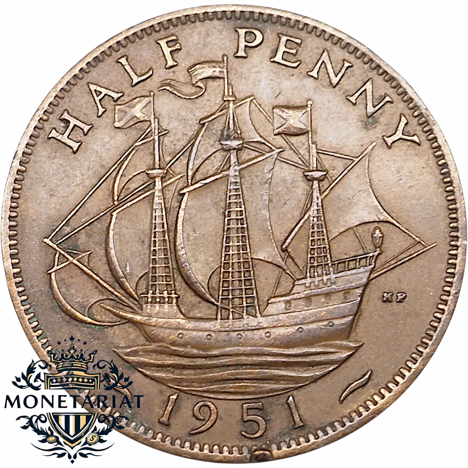 ПОЛОВИНА ПЕННИ 1951 ГОДА, ВЕЛИКОБРИТАНИЯ