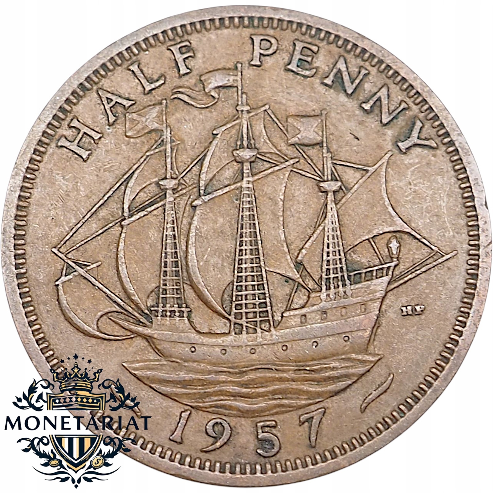 ПОЛОВИНА ПЕННИ 1957 ГОДА, ВЕЛИКОБРИТАНИЯ