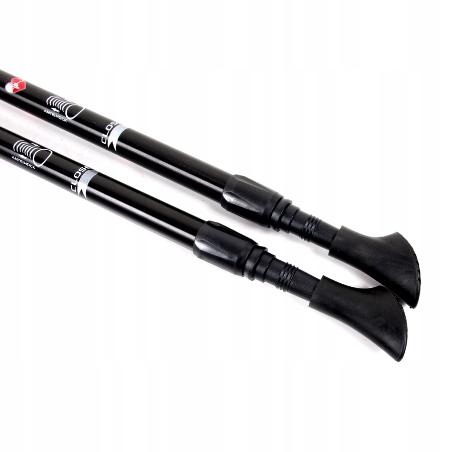 сделано из алюминия, Регулируемая длина в диапазоне 110-135 см, пробка и пластиковые ручки, резиновые ноги, Закаленные стальные пещеры (включены в пластины), перчатки на липучке, Вес палки ок. 250gr, В пакете вы найдете инструкции с мини -руководством пользователя