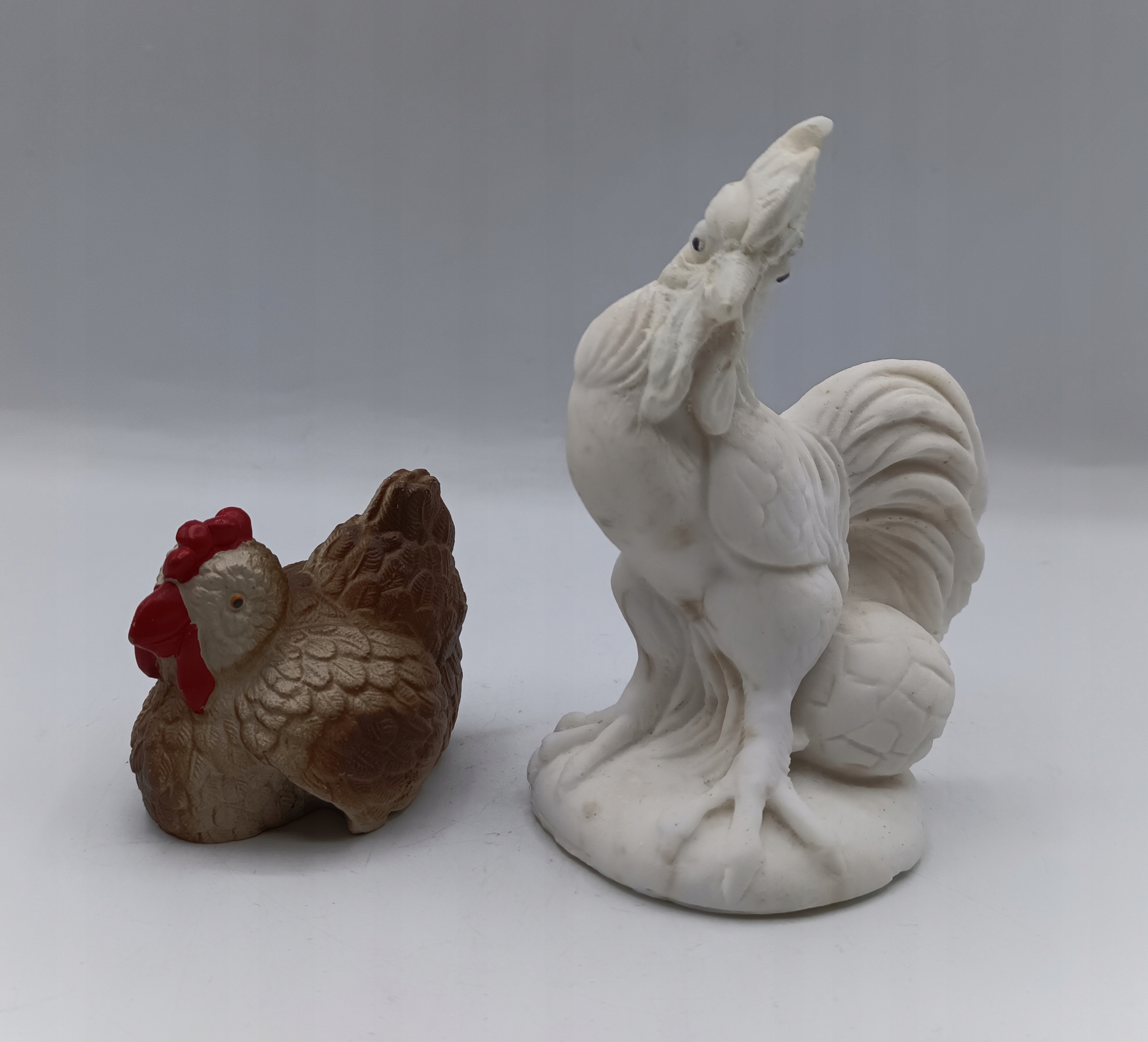 Петух с шариком и коричневым краном - 2 статуэтки - старый - винтажный