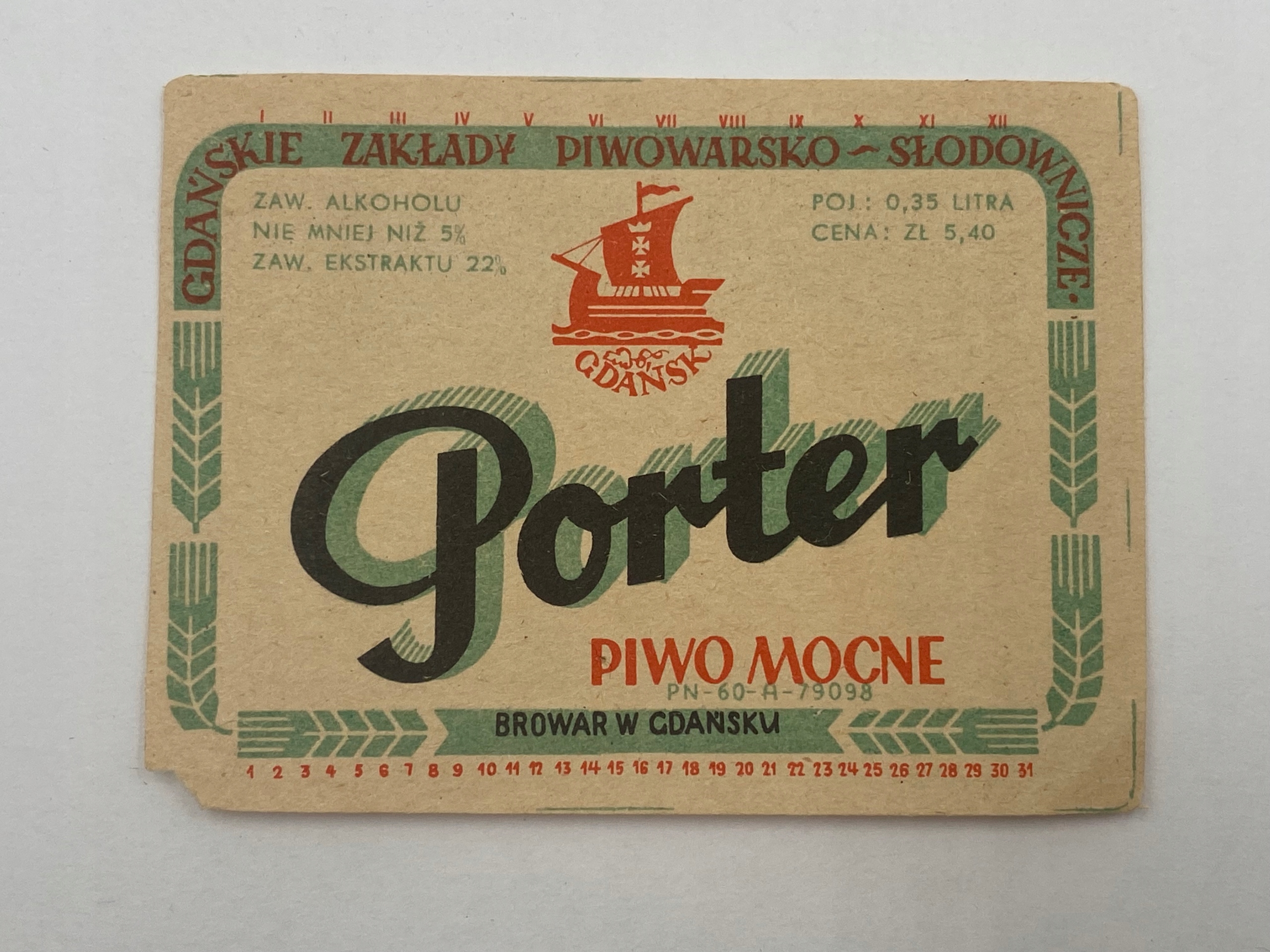 Этикетка пива: крепкое пиво, портер, Пивоварня в Гданьске
