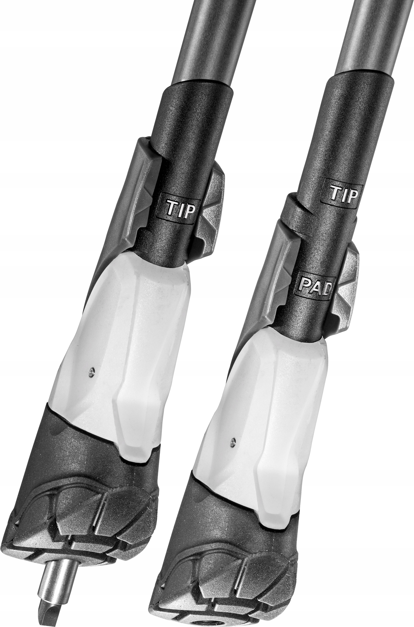 Палочки оснащены двумя различными типами кончиков (резиновый наконечник и вагинальный наконечник), один из которых идеально подходит на мощеных поверхностях, а другой - на грунтовых поверхностях.