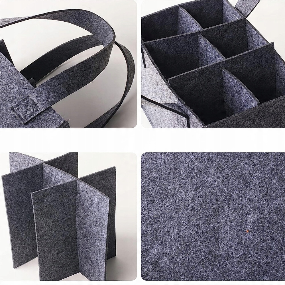 - Наша сумка для хранения винных бутылок изготовлена из высококачественного шерстяного фетра плотностью 200 г. Он легкий, мягкий, прочный, имеет хорошую эластичность волокон и приятный на ощупь. Не только водонепроницаемая, но и теплоизоляционная. Он очень прочный, долговечный и легкий, его можно использовать в течение длительного времени.