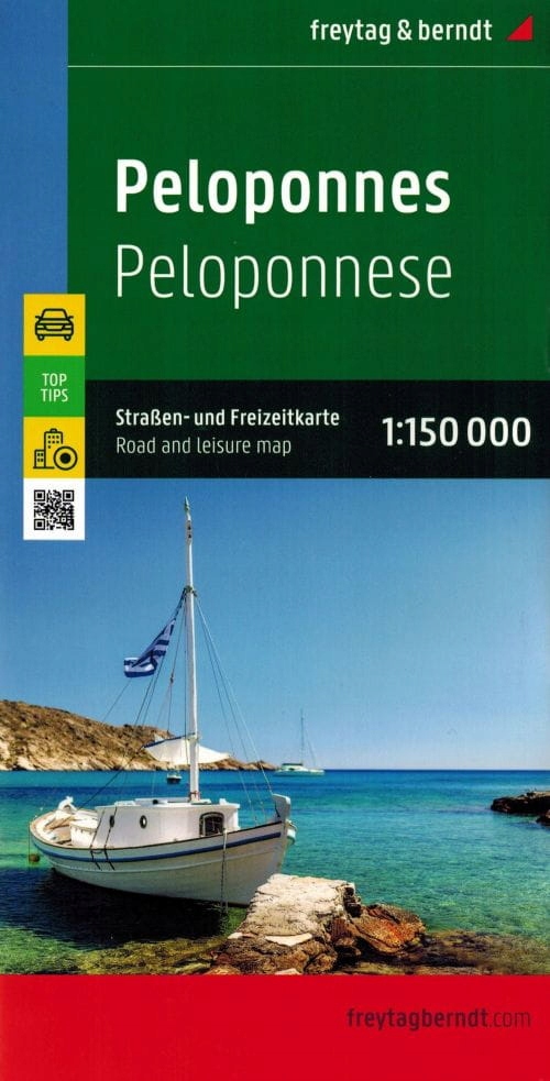Складная двусторонняя автомобильная и туристическая карта полуострова Пелопоннес в масштабе 1:150 000, опубликованная Freytag & Berndt.