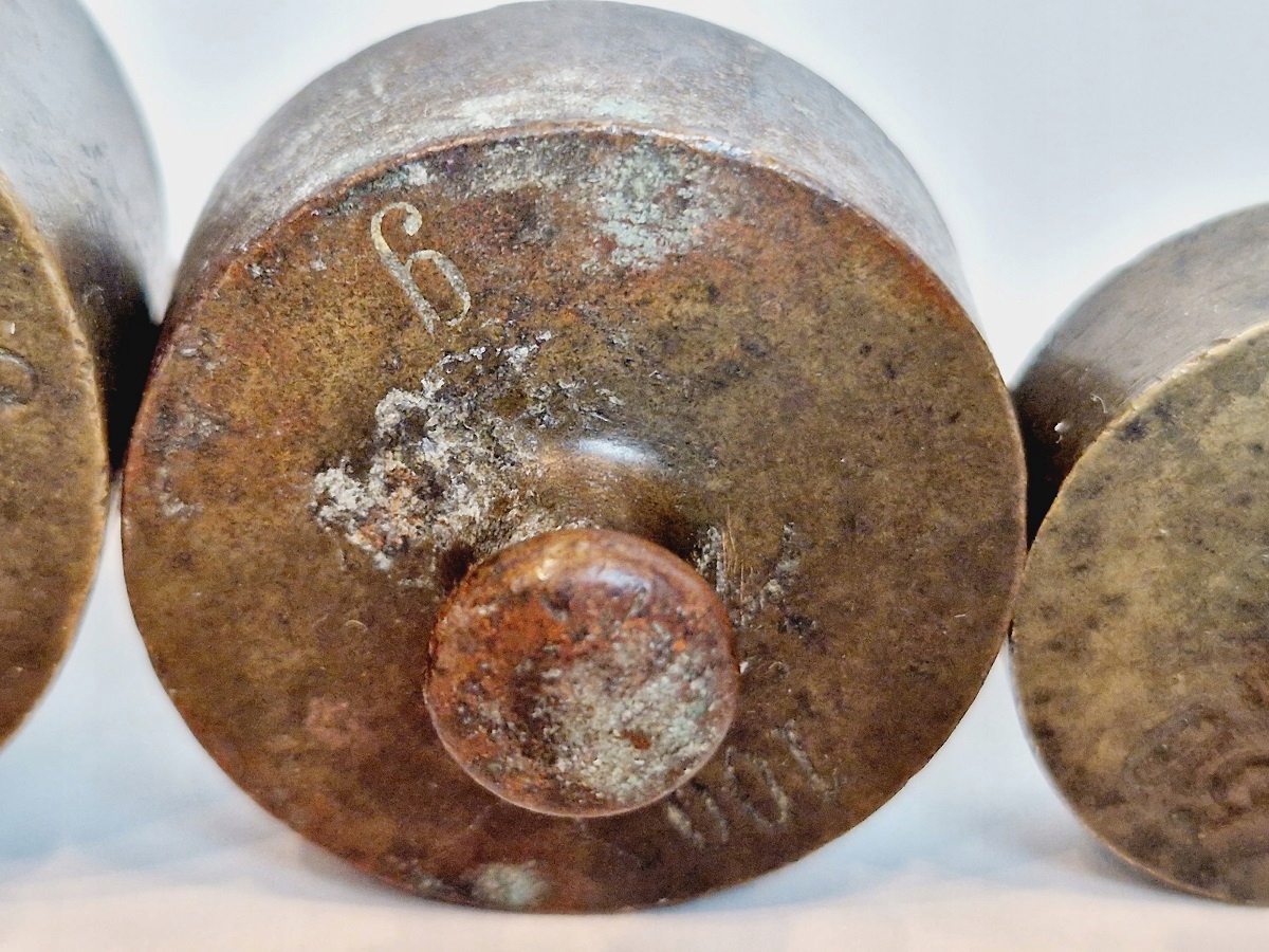 Гири не чистились, покрыты оригинальной, старой, темной патиной.