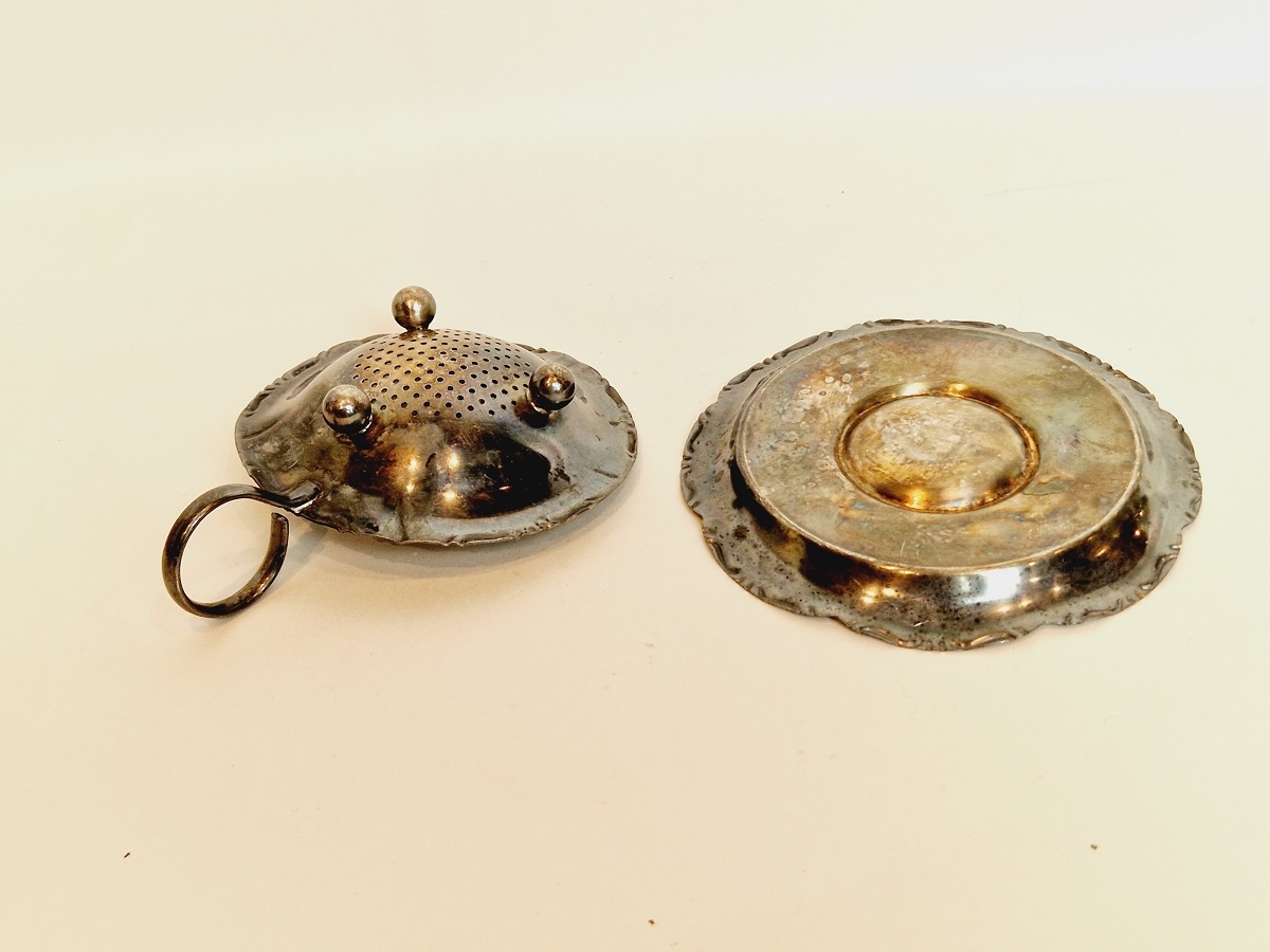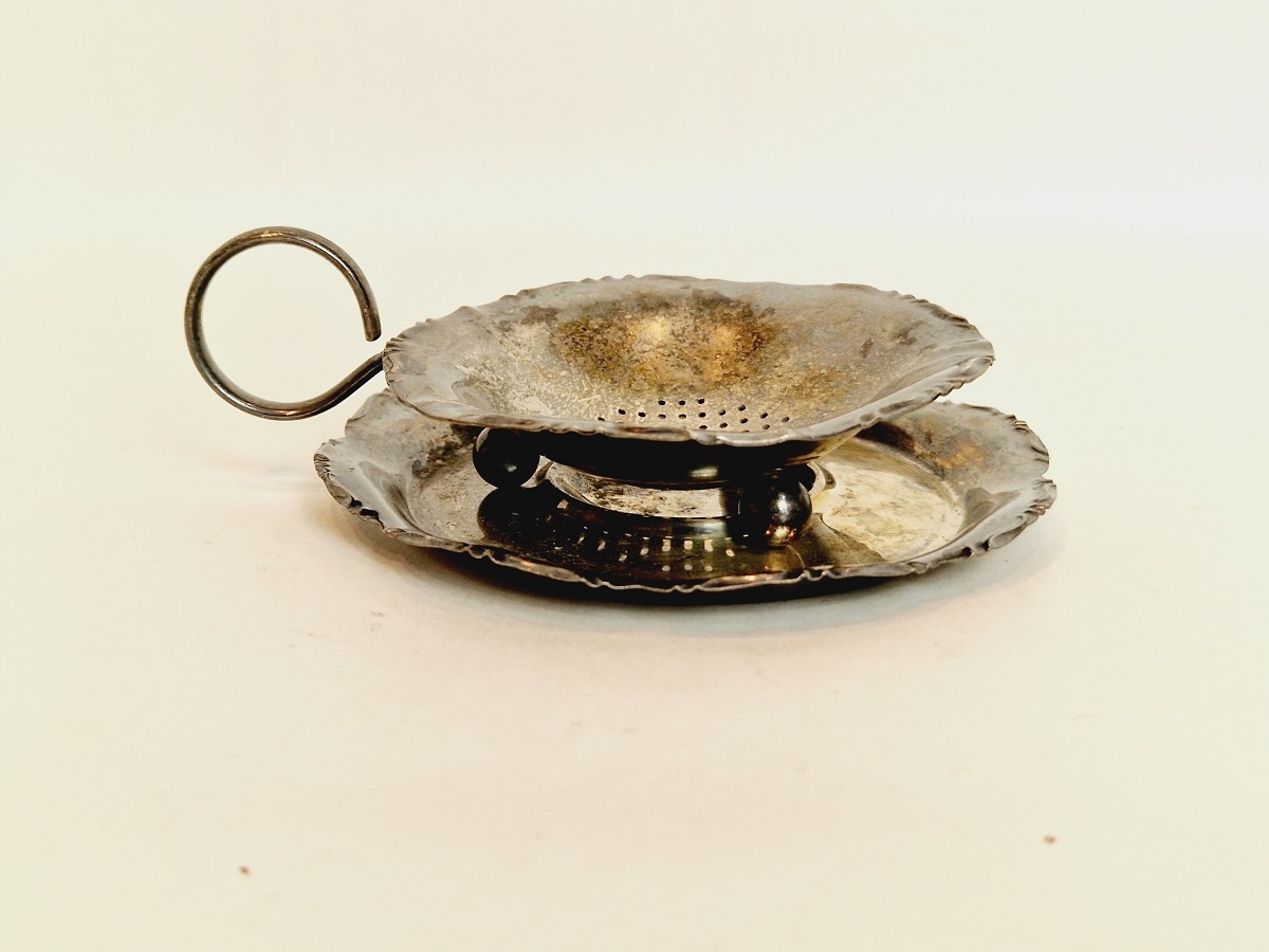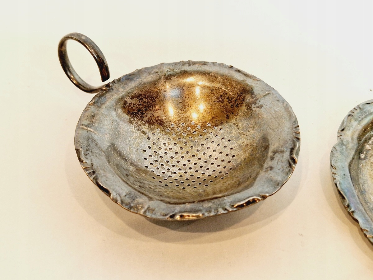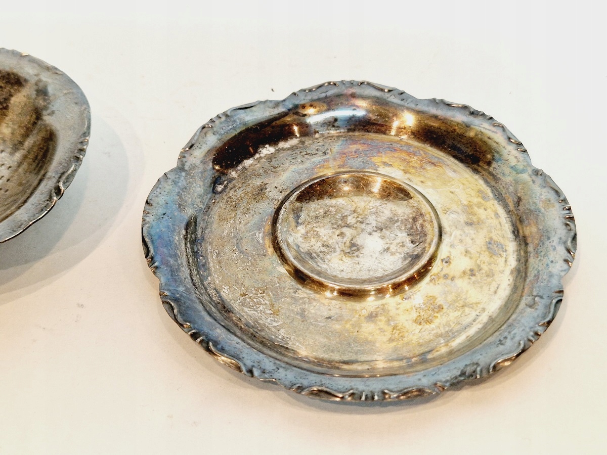 Ситечко и блюдце не имеют потертостей на серебряном покрытии.