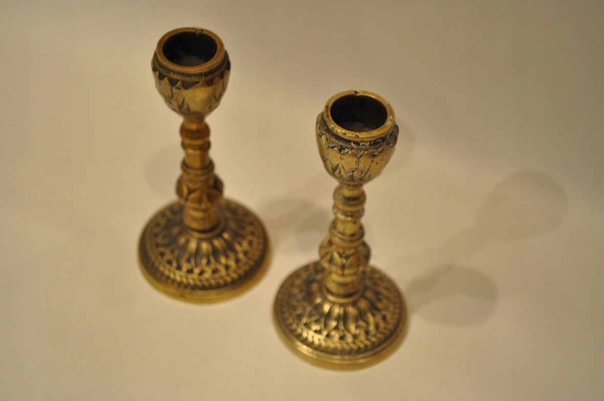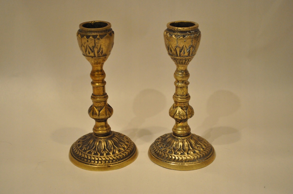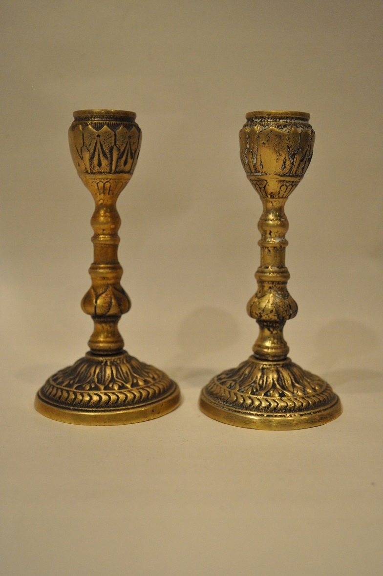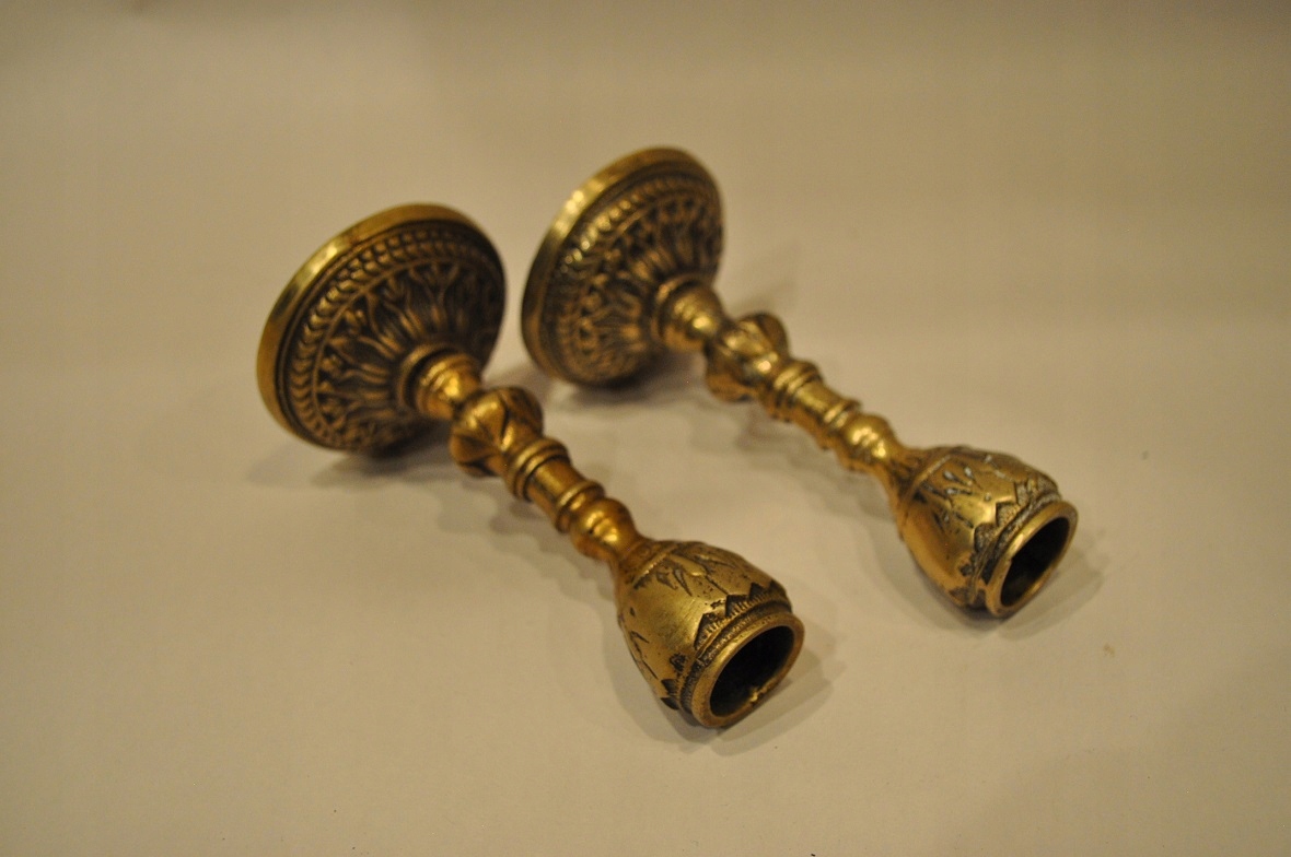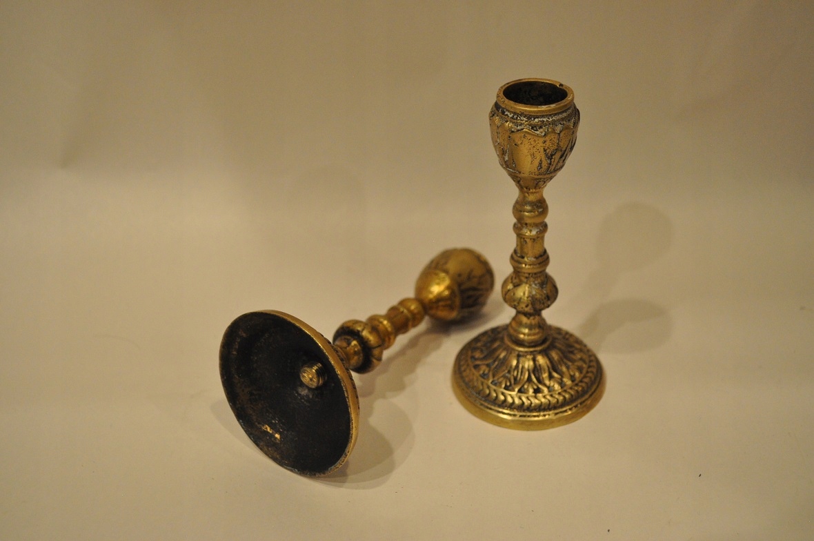 Півтора. XXw / Набір з 2 шт. - СТАРІ ЛАТУННІ СВІЧНИКИ - ЛАМПИ /091