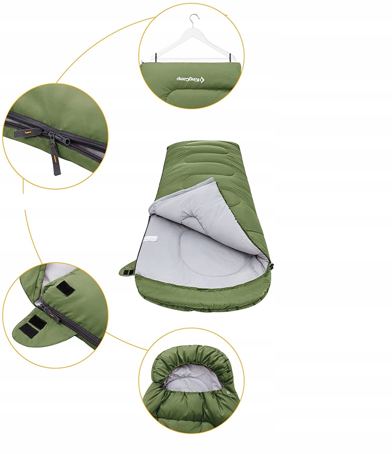 Широкий и толстый спальный мешок: по сравнению с классическим спальным мешком KingCamp этот спальный мешок имеет больше наполнителя. Теплый комфортный наполнитель Loft 350 г/м2 обеспечивает эксплуатацию в течение 3-4 сезонов. Диапазон температур: комфорт: 6°C Предел: 1°C Экстремально: -14°C.