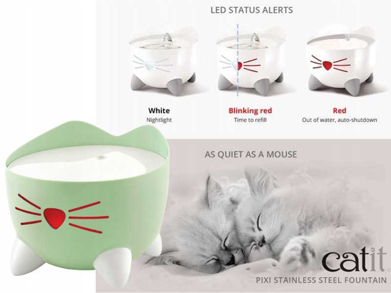 Pixi Catit Combo Set Set Green Fountain + Food Bowl + x3 Filter