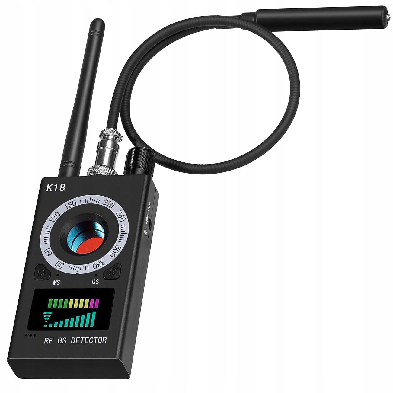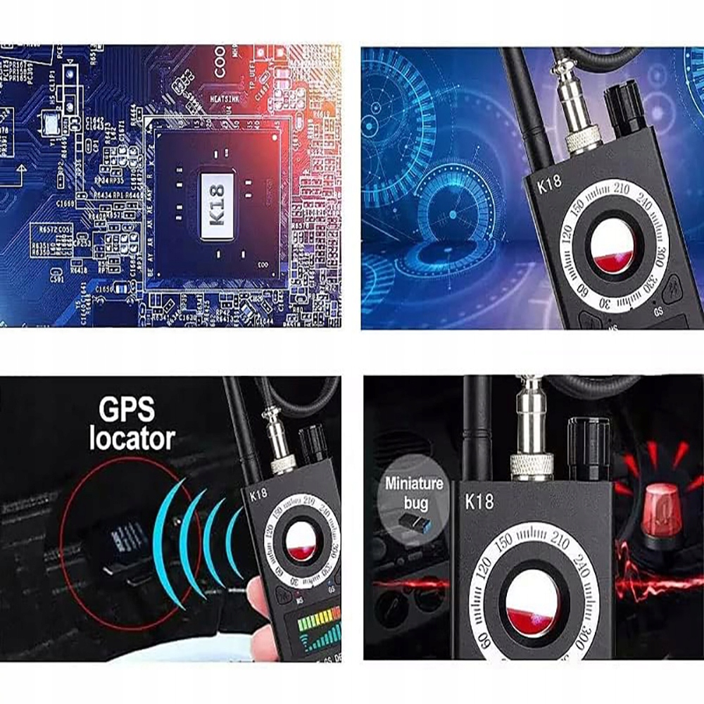 является точным и эффективным детектором почти всех прослушиваний, доступных на рынке, беспроводных камерах, GSM Wiretaps и Locators GPS. Он очень удобен, компактный и эффективен в обнаружении прослушивания, локаторов GPS, беспроводных камер и других устройств