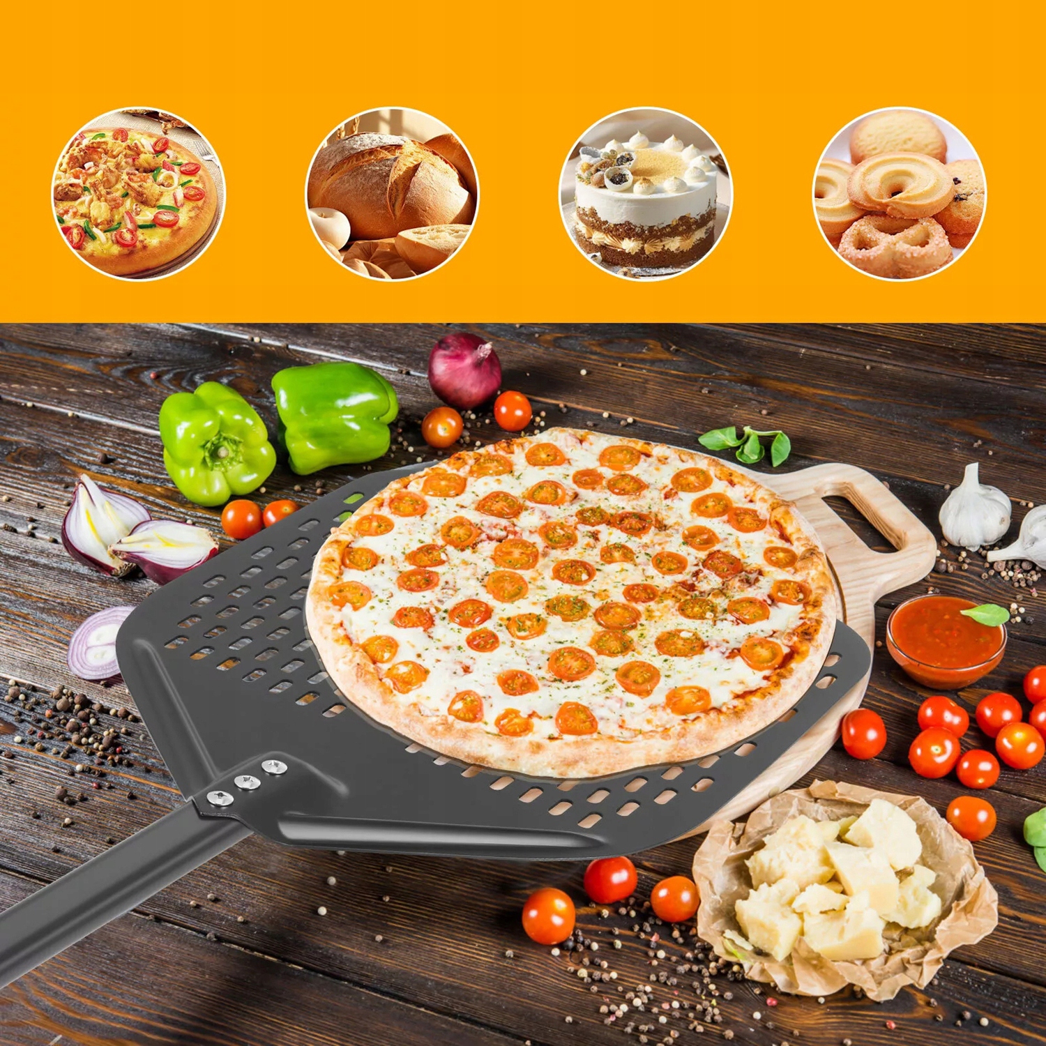 🍕ВЫСОКОКАЧЕСТВЕННЫЙ МАТЕРИАЛ: Лопатка для пиццы, изготовленная из твердого анодированного алюминия с прочным антипригарным покрытием, имеет прочную и прочную конструкцию, которая выдержит суровые условия профессиональной выпечки пиццы.