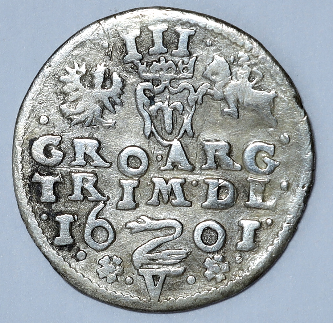 пиж Сигизмунд III Ваза, Трояк Вильно 1601 г. - Лебедь на V - РЕДКИЙ