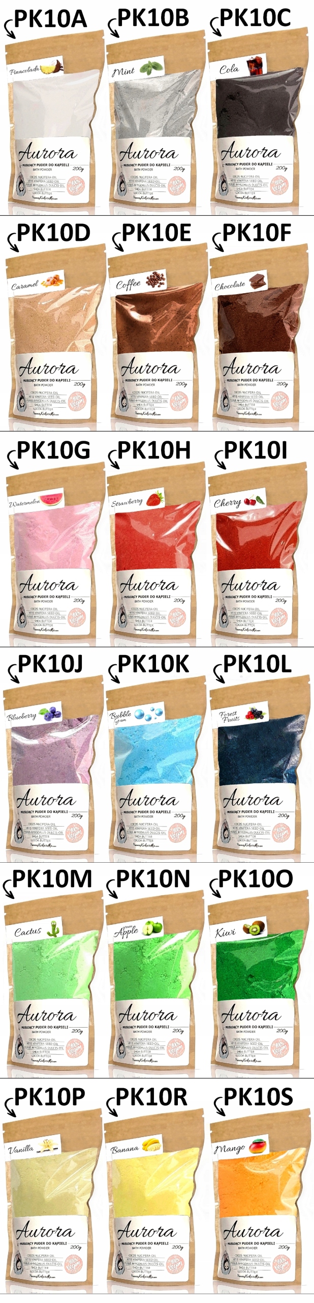Хотя наш порошок для ванны не является косметическим средством и мы не обязаны публиковать его состав, вы найдете его ниже. Мы считаем, что в случае с добавками для ванн это важная информация для потребителя. И вообще... Мы хотим это показать! – Ингредиенты, содержащиеся в порошках Aurora, представляют собой тщательно разработанный рецепт, основанный на хорошо известных «кухонных» ингредиентах. Мы ограничили количество искусственного красителя до абсолютного минимума – во всей упаковке порошка содержится не более доли одного грамма!