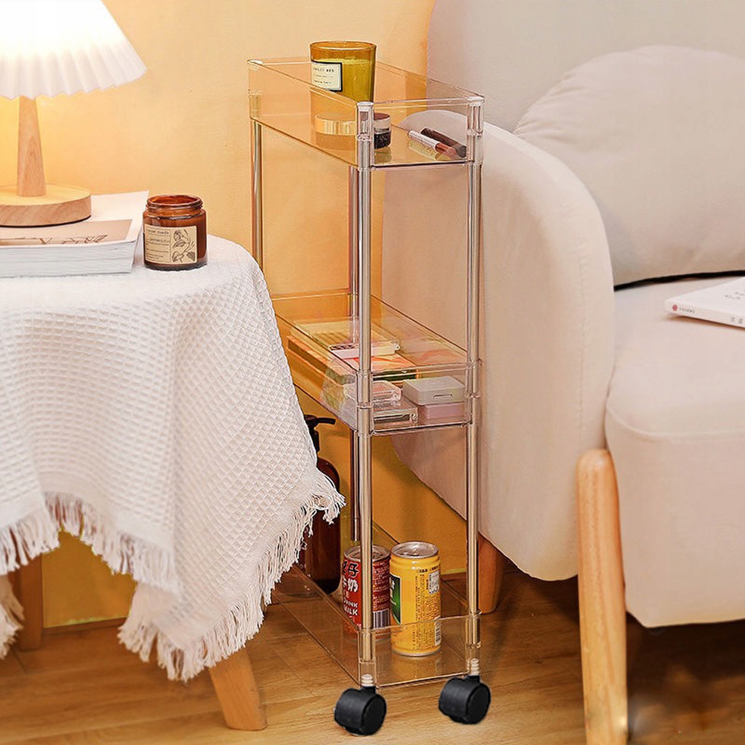 Эту тонкую полку-тележку можно использовать как кухонную полку, тележку для ванной, органайзер для коляски, тележку для спальни/гостиной. Идеально подходит для небольших помещений, таких как шкафы, кухни, ванные комнаты, гаражи, прачечные, офисы или между стиральной и сушильной машинами.
